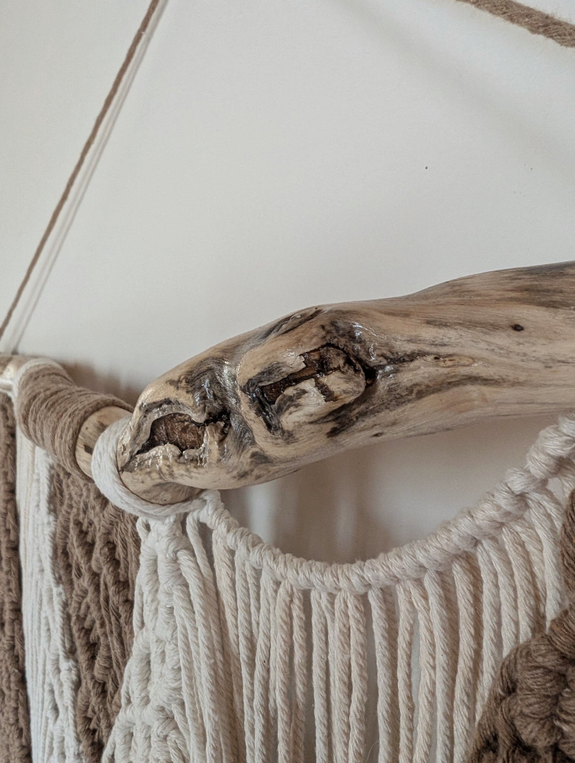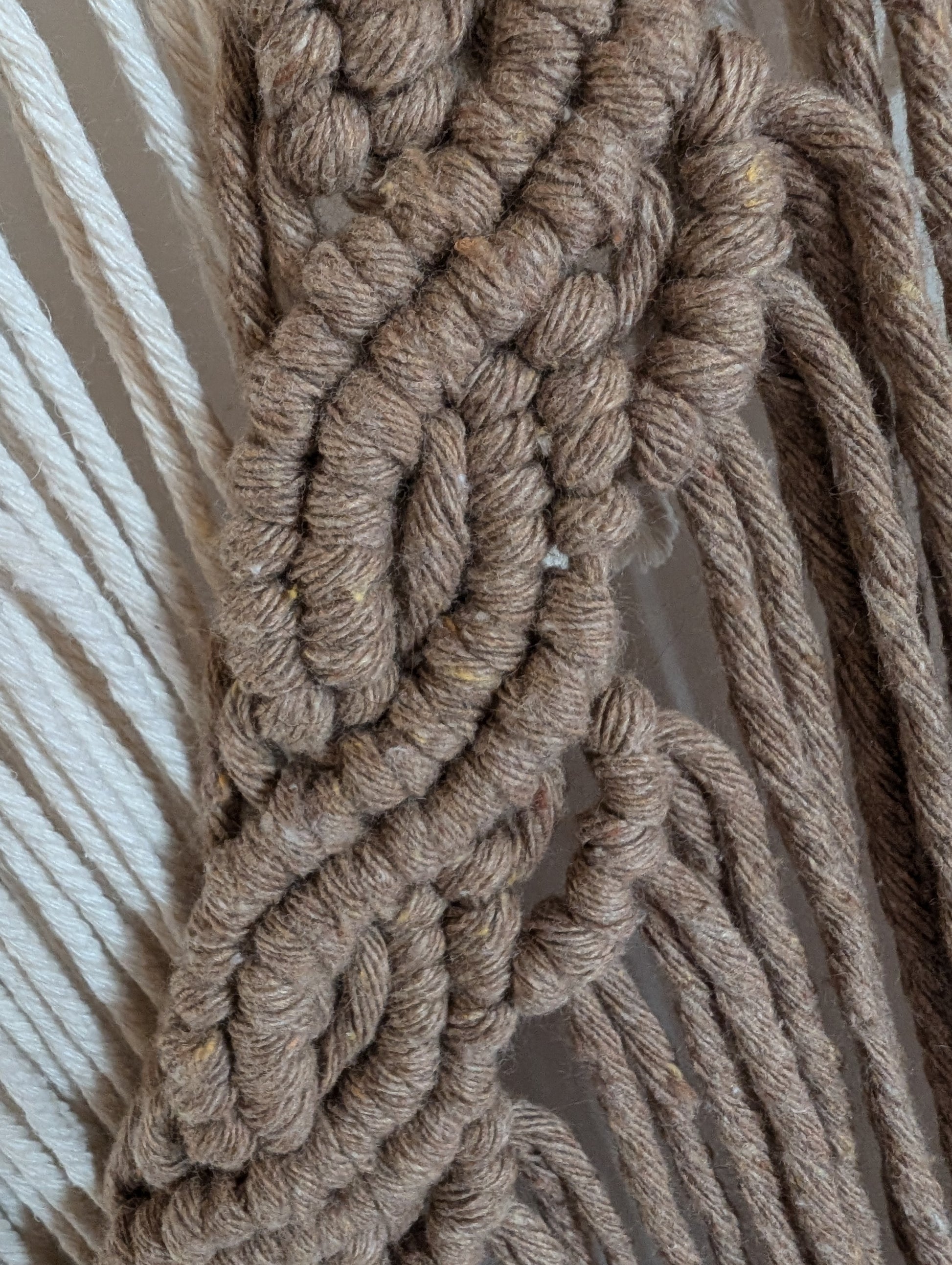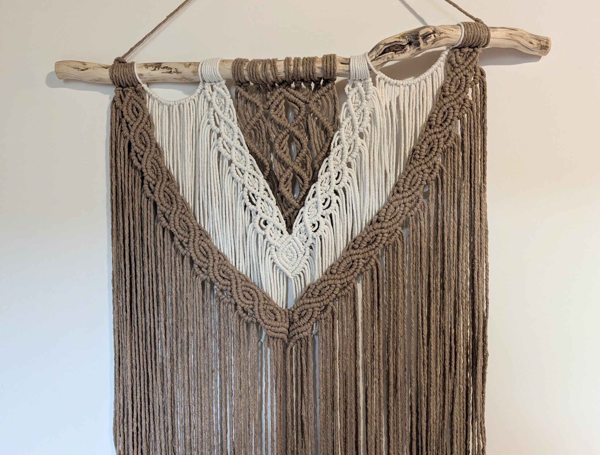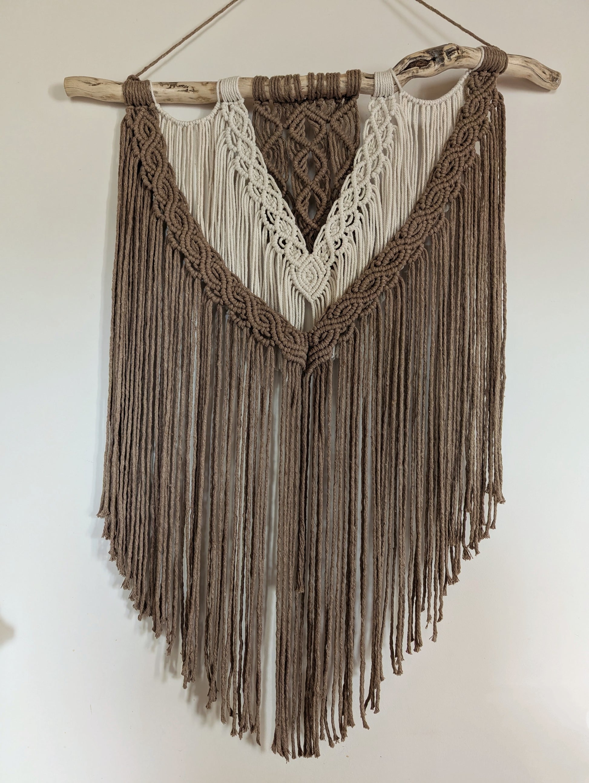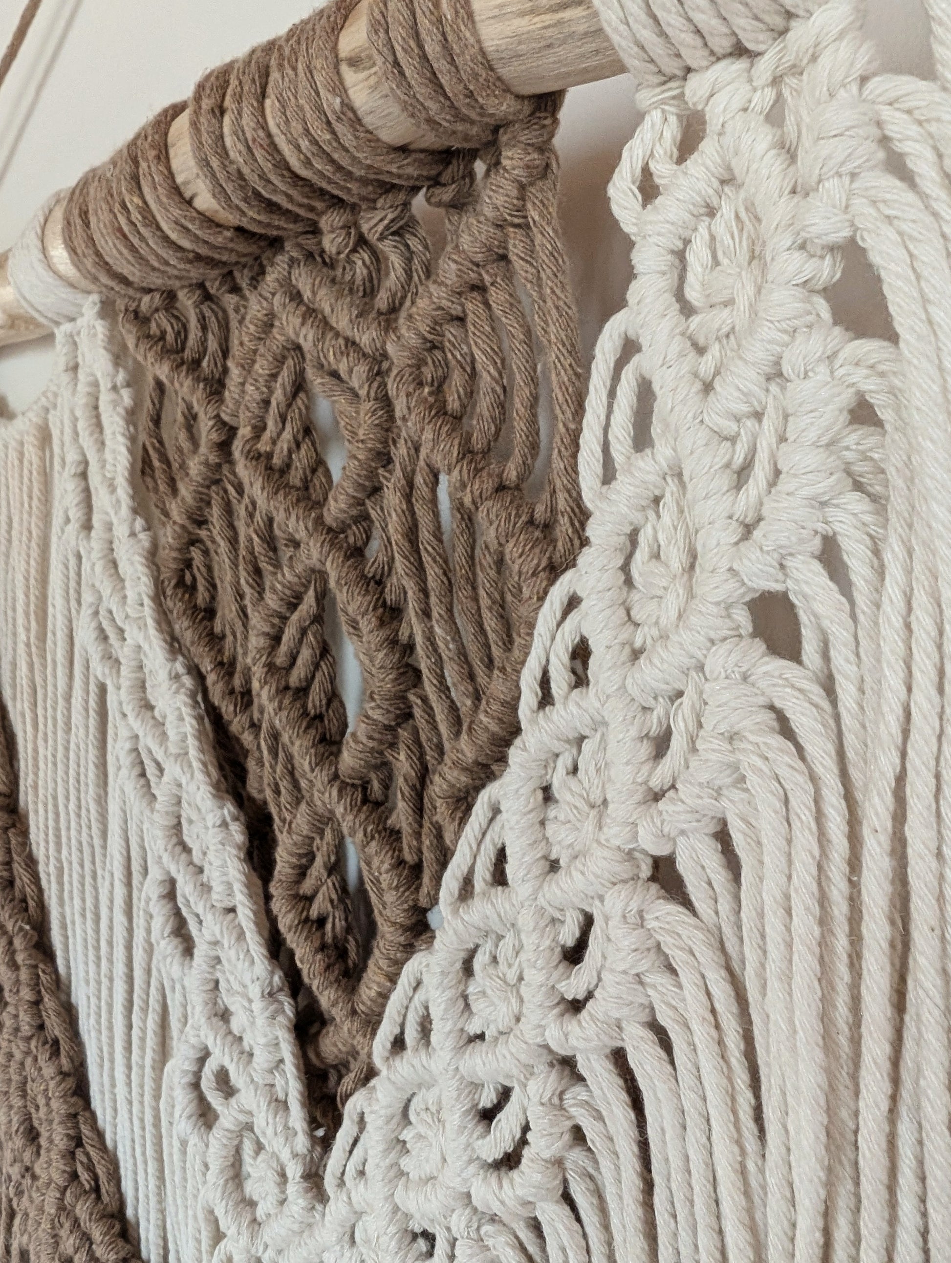 Dall'intreccio di fili in puro cotone nasce questo arazzo da parete in macramè.