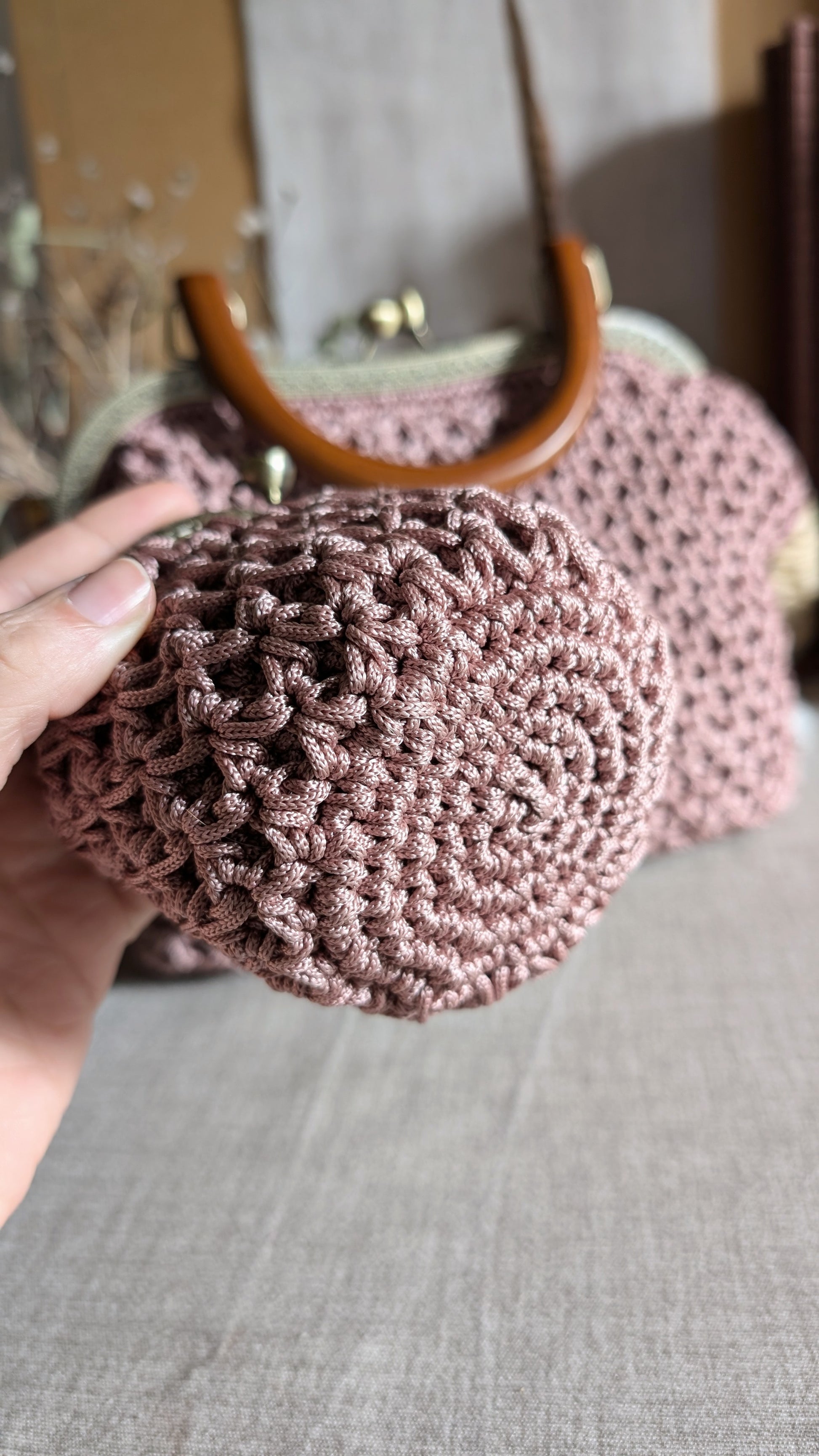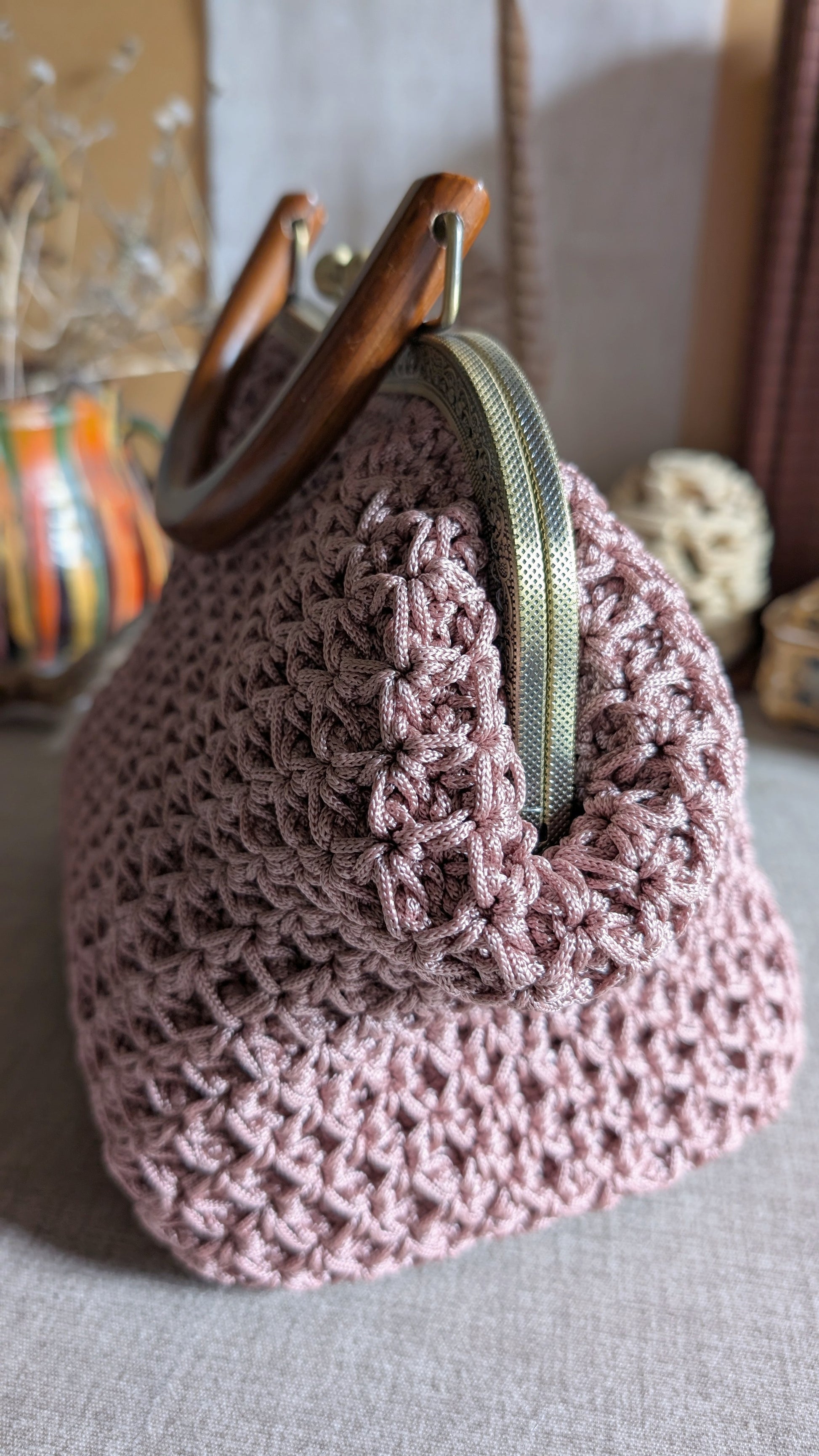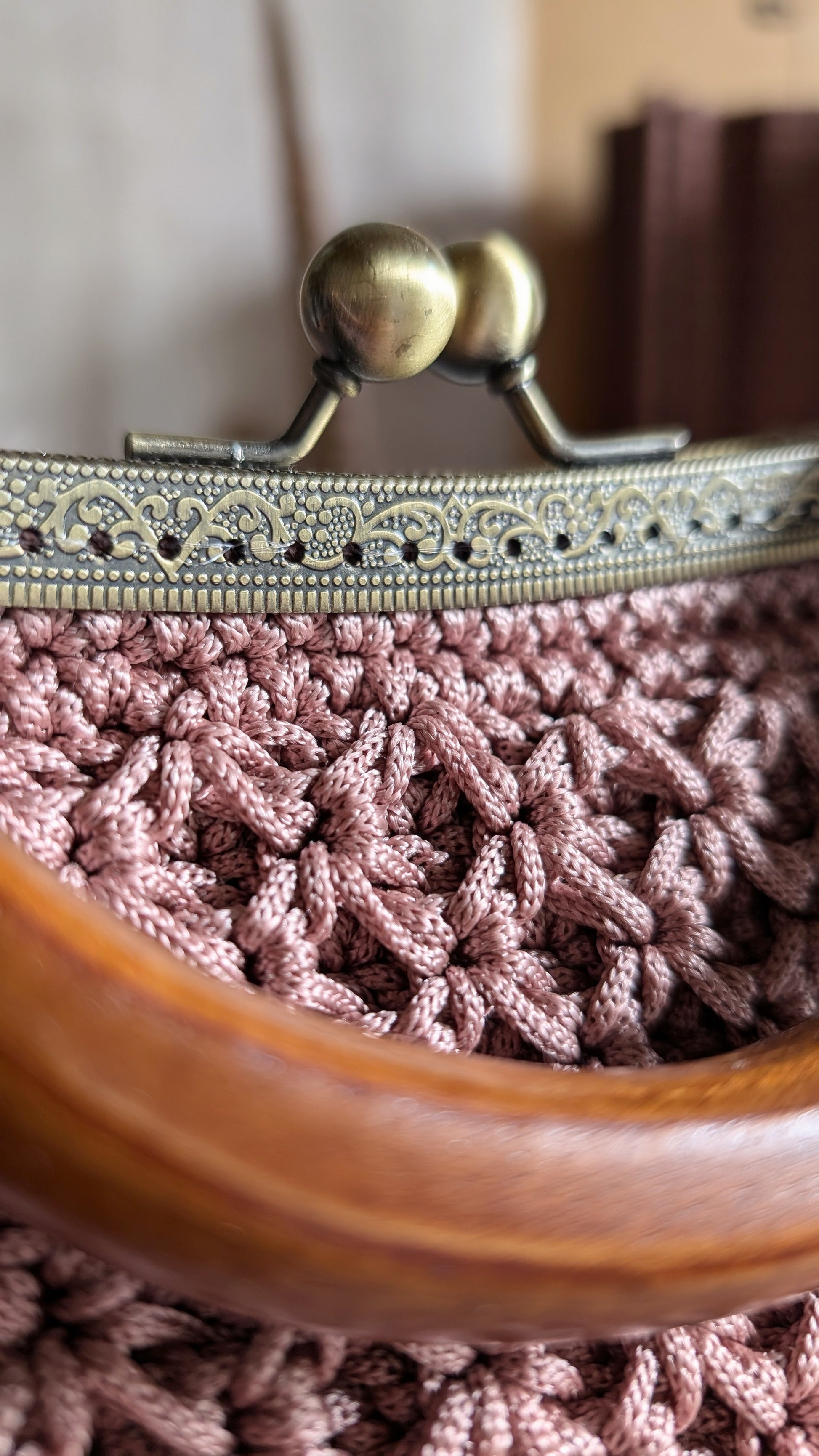 Questo set è stato prodotto all' uncinetto lavorando con un cordino lucido colore rosa anticato.