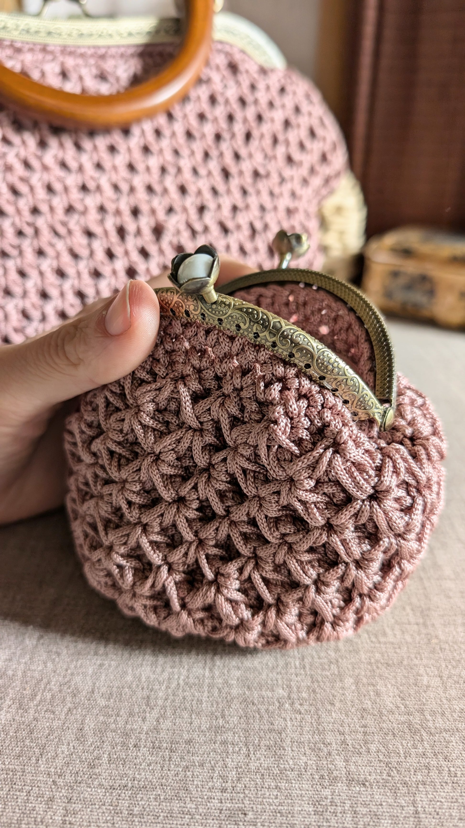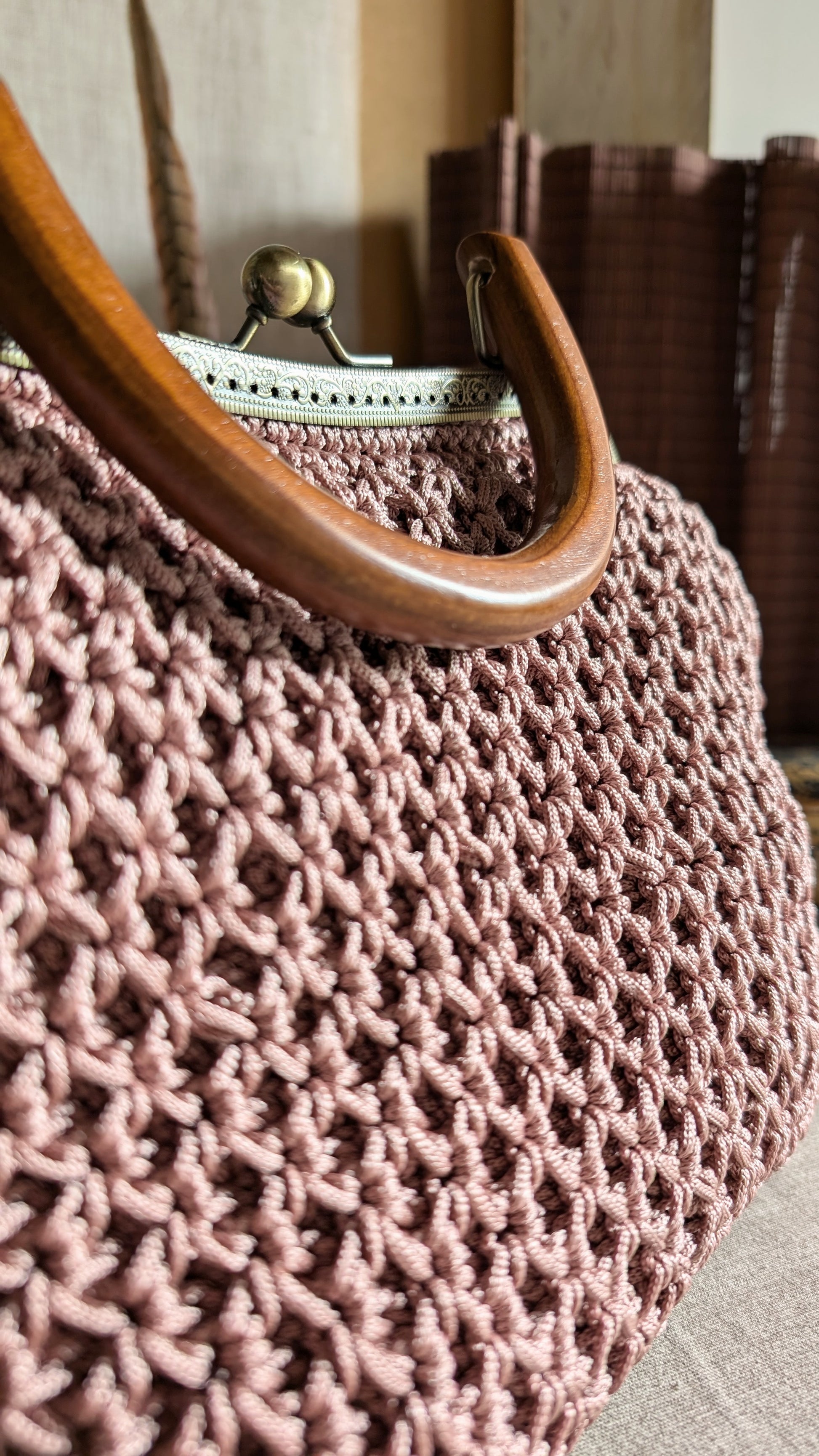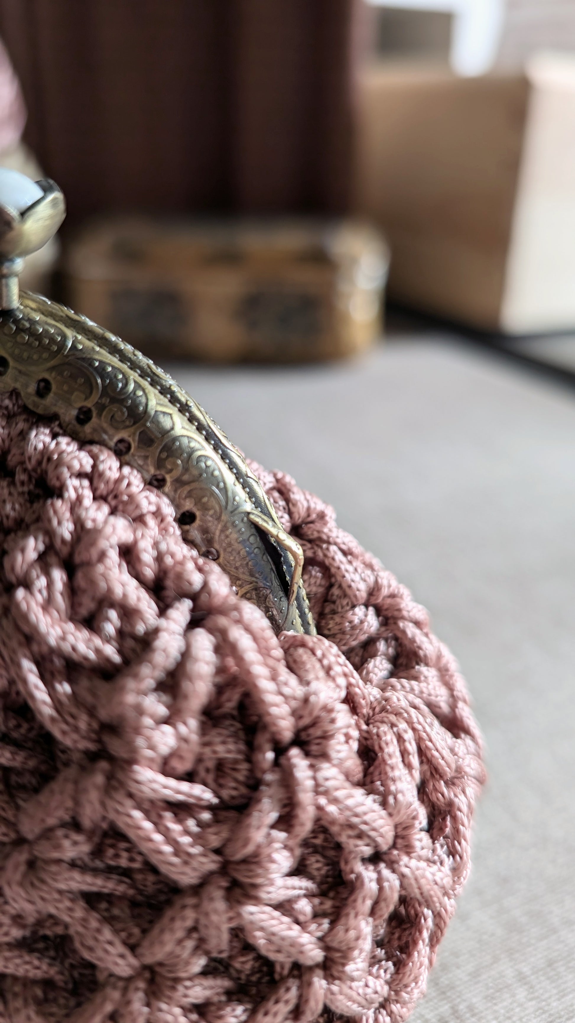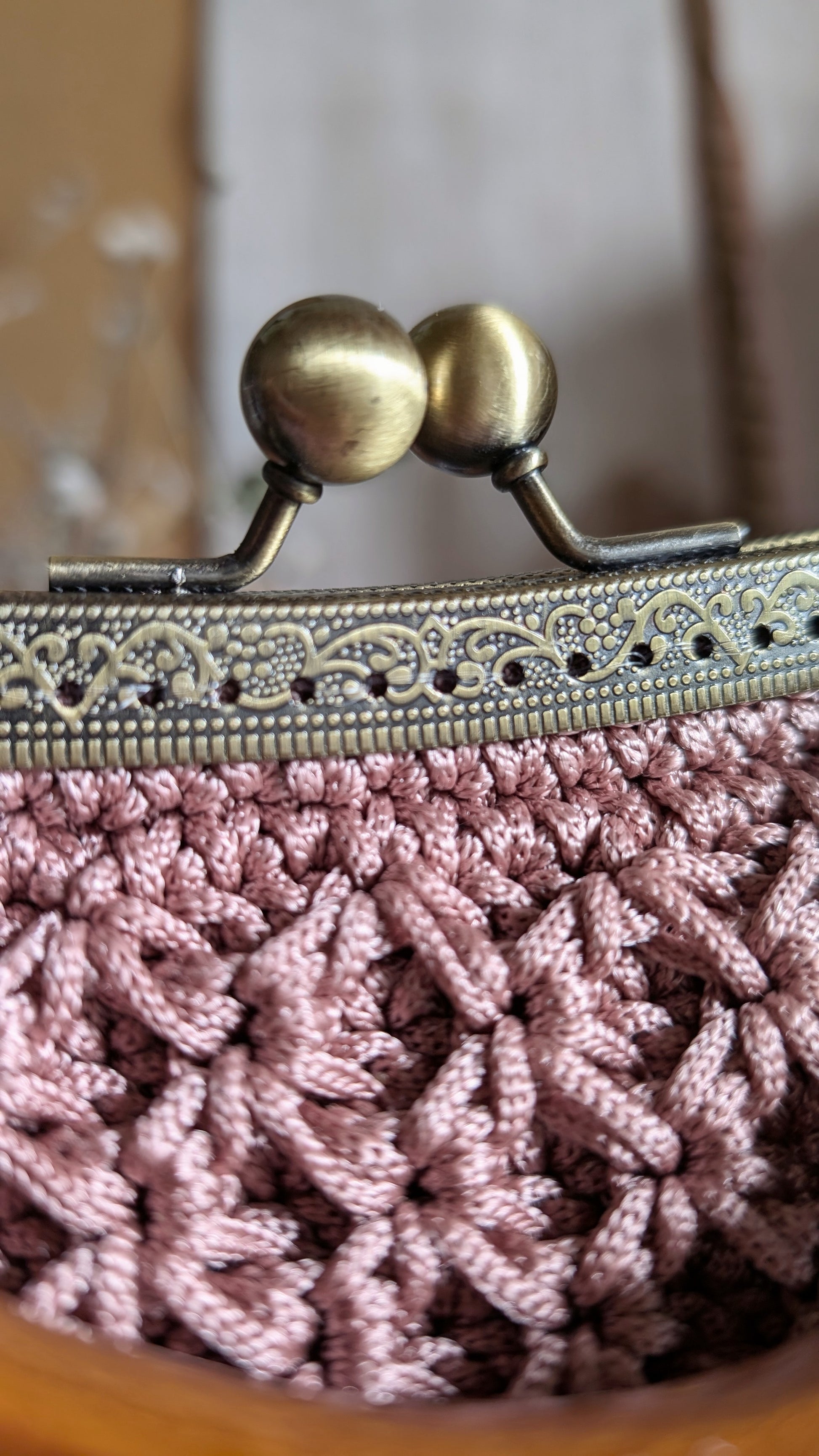 Questo set è stato prodotto all' uncinetto lavorando con un cordino lucido colore rosa anticato.