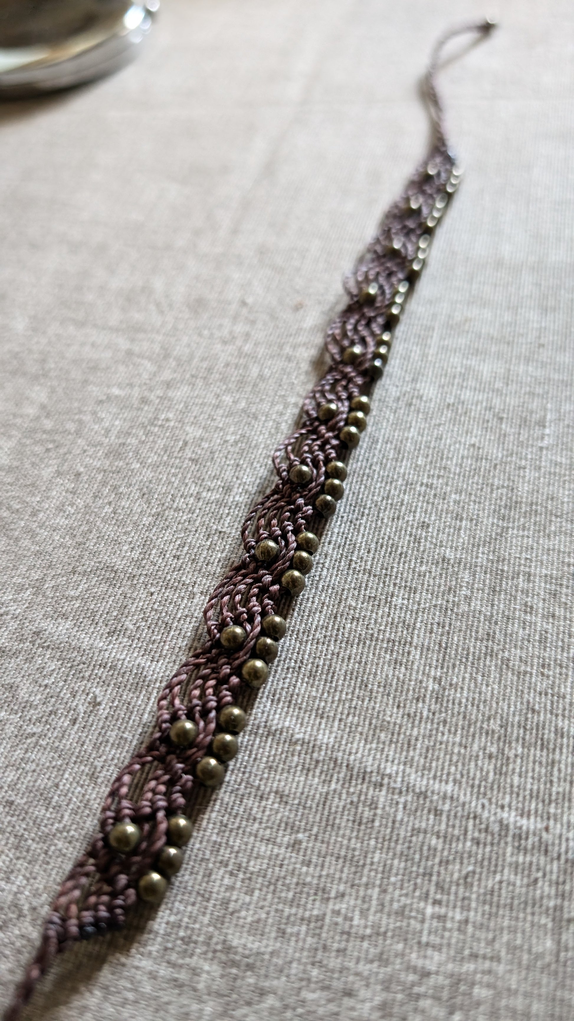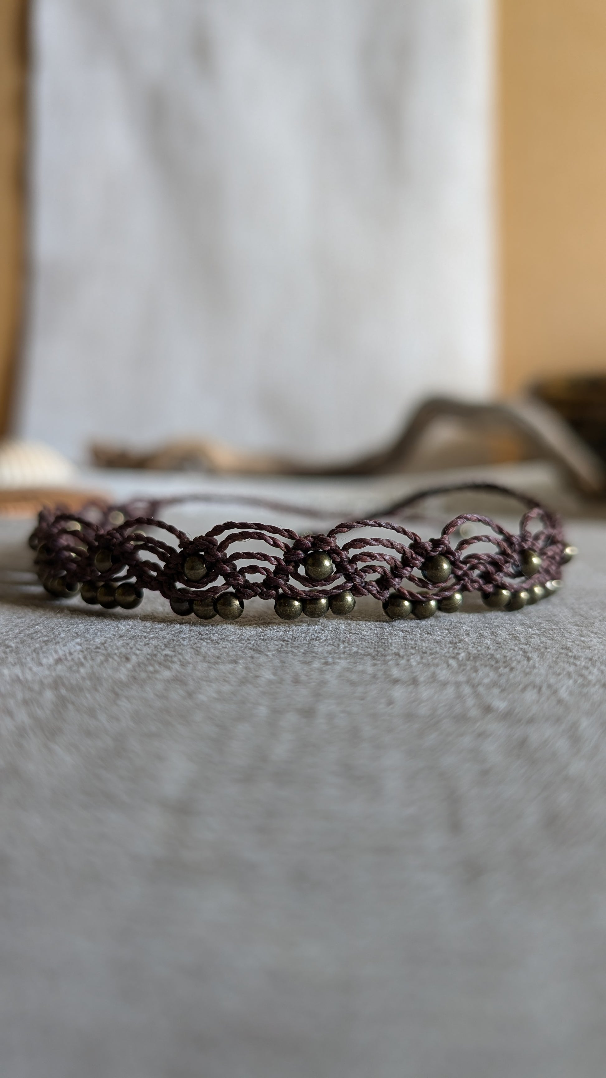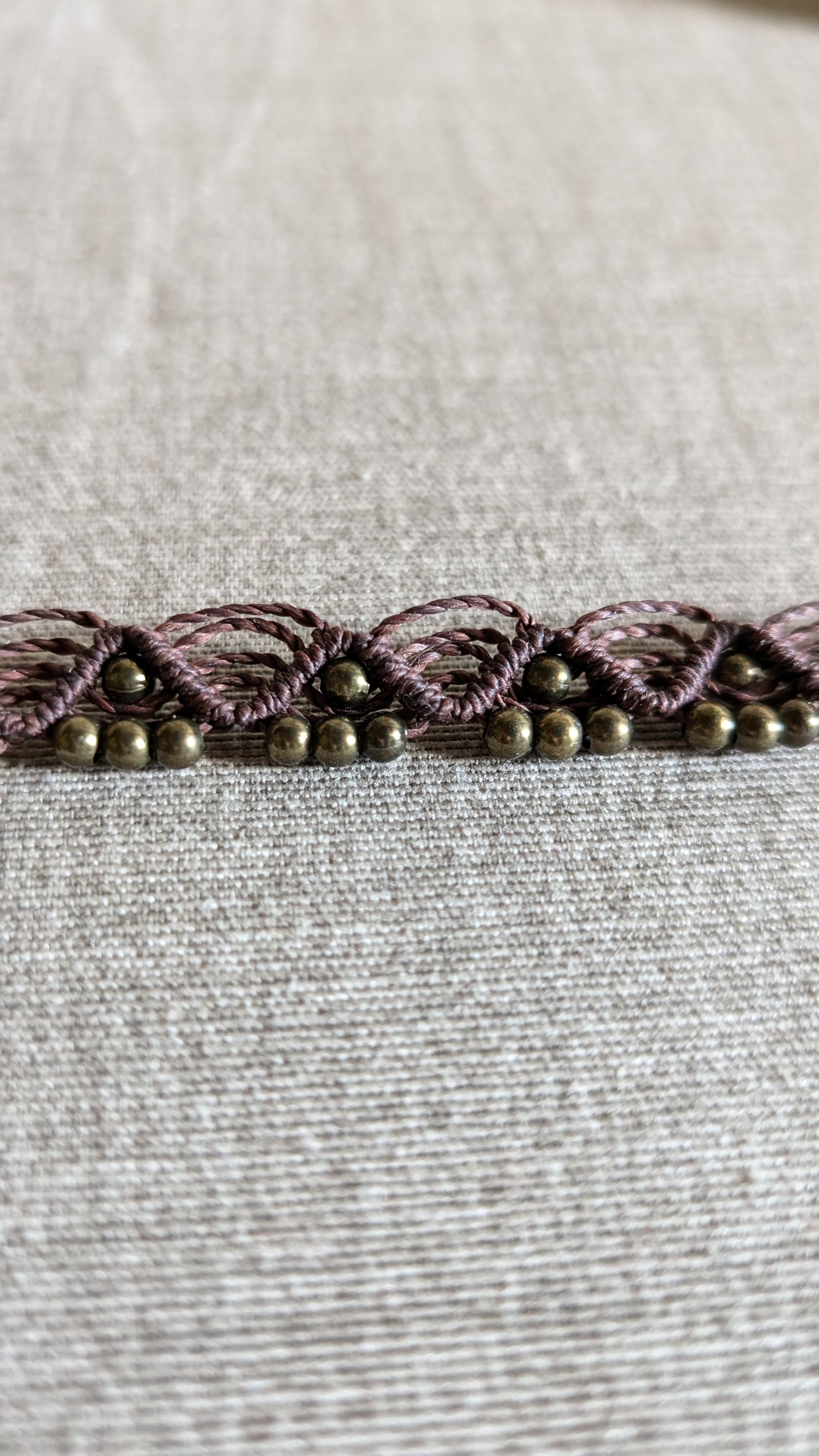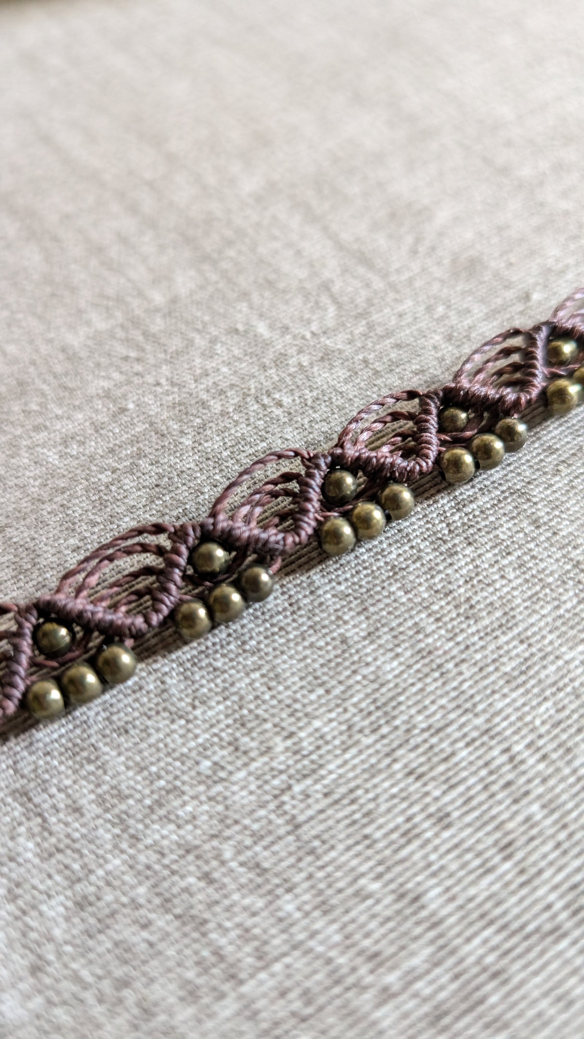 Cavigliera fatta a mano in micro macramè con perline color bronzo.