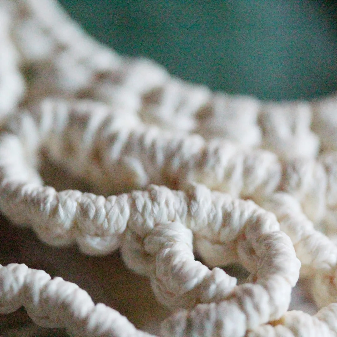 Questa collana a girocollo è realizzata a mano con la tecnica del micro macramè.