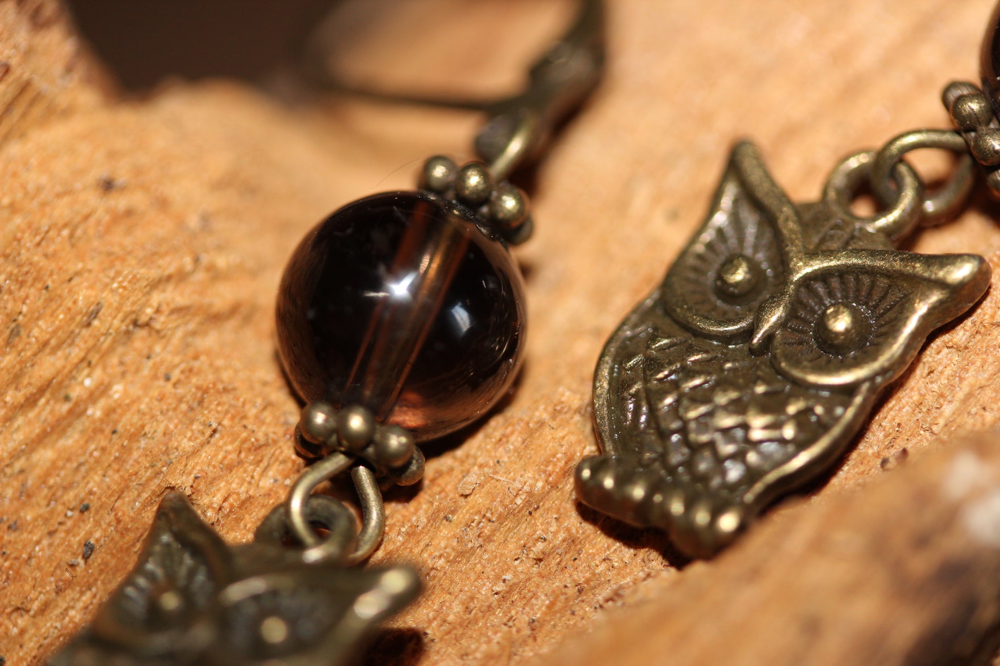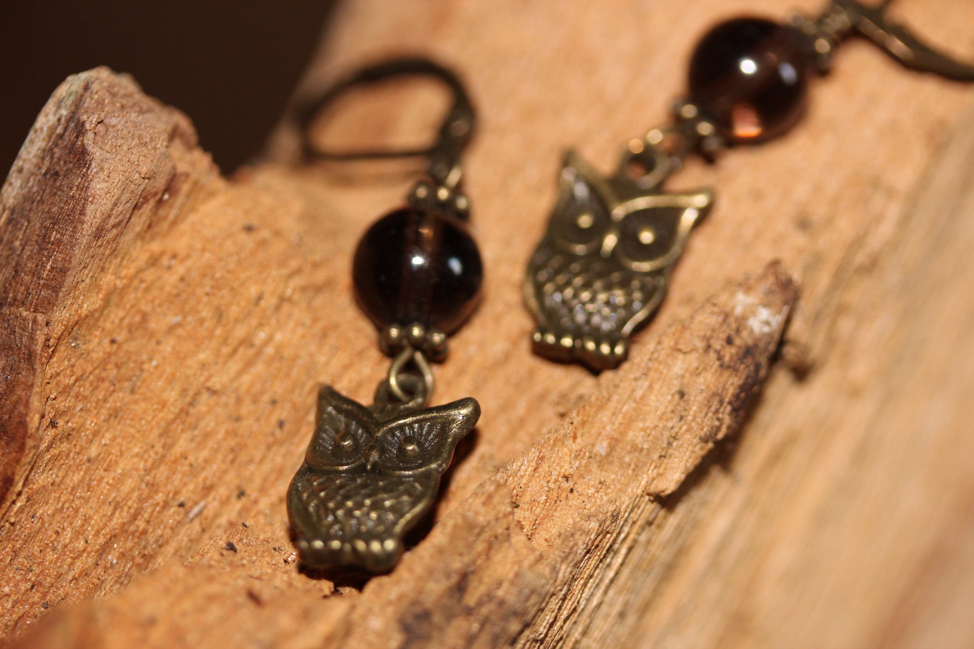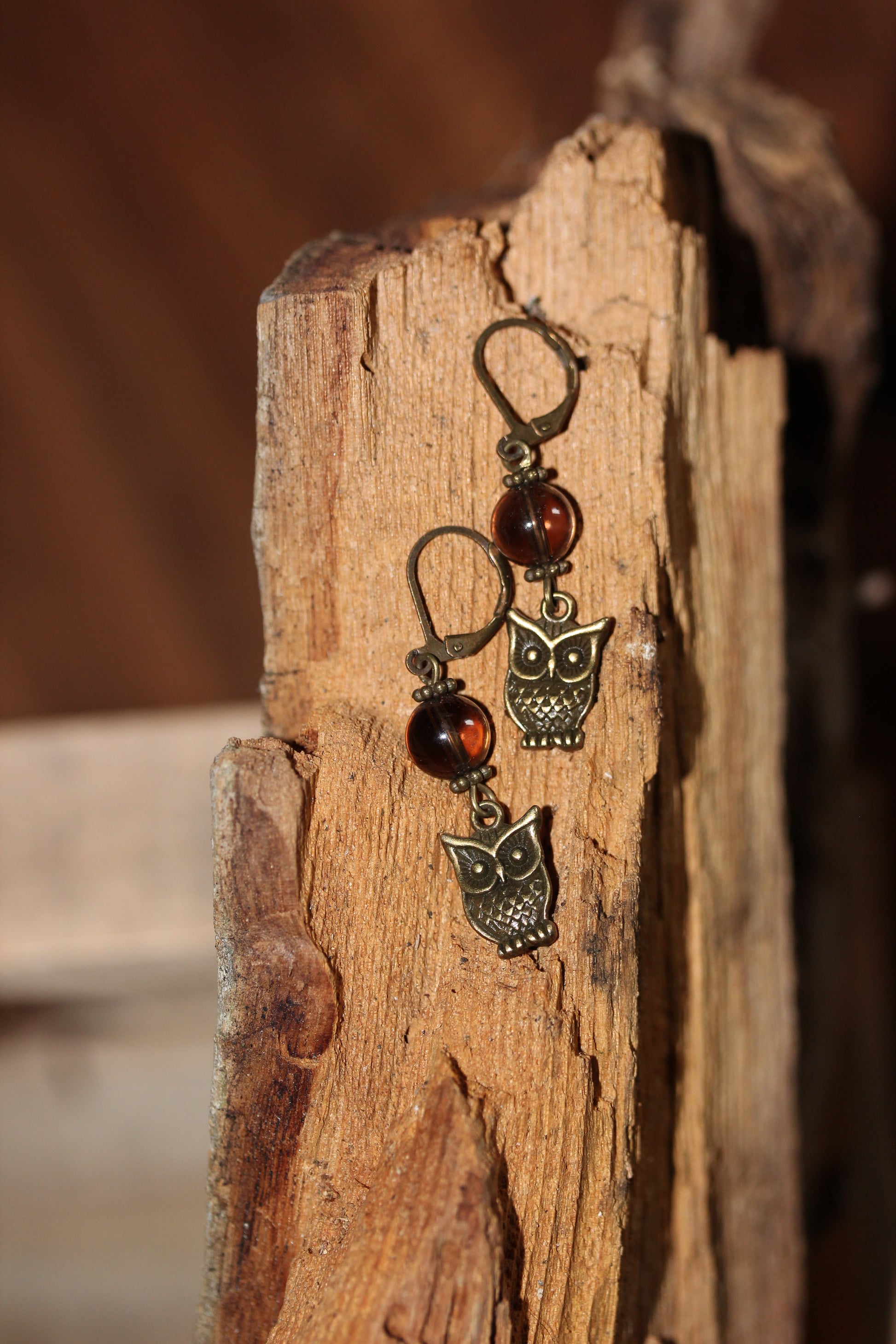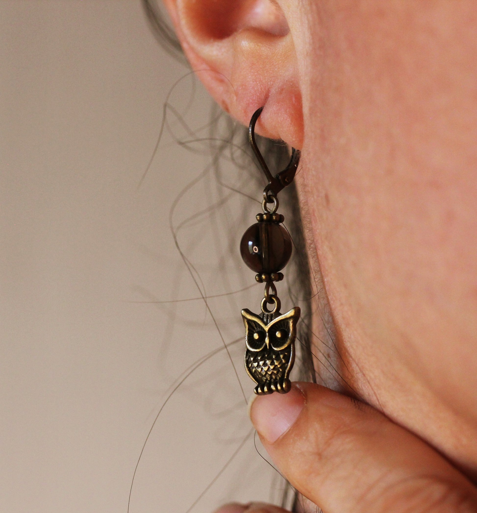 Innamorati della semplicità grazie a questi orecchini con perla di vetro e un gufo come charm finale.