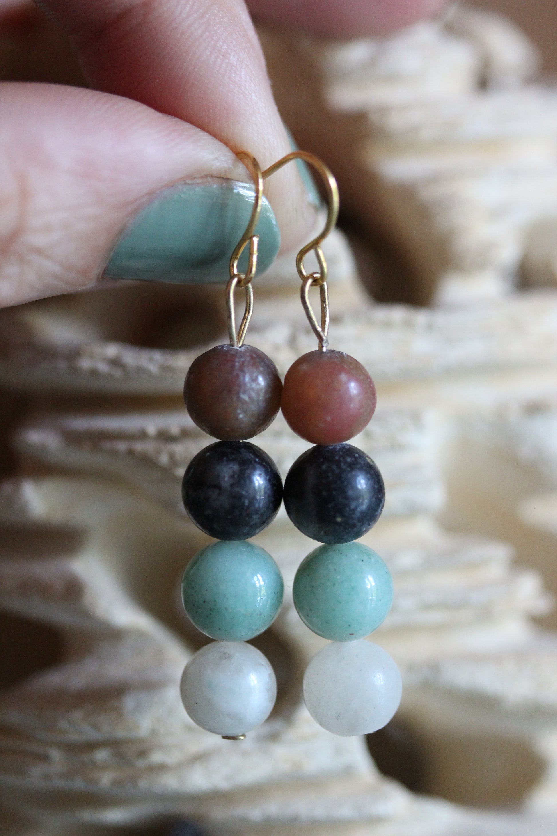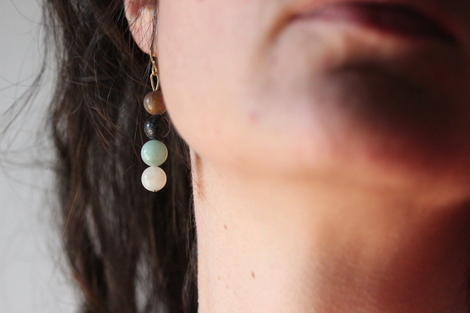 Un mix di colori davvero unico caratterizzano questi splendidi orecchini grazie alle perle di amazzonite. Nella mitologia questa pietra era conosciuta come "roccia amazzonica" e secondo gli Indios aveva la proprietà unica di rendere belle e attraenti le donne.