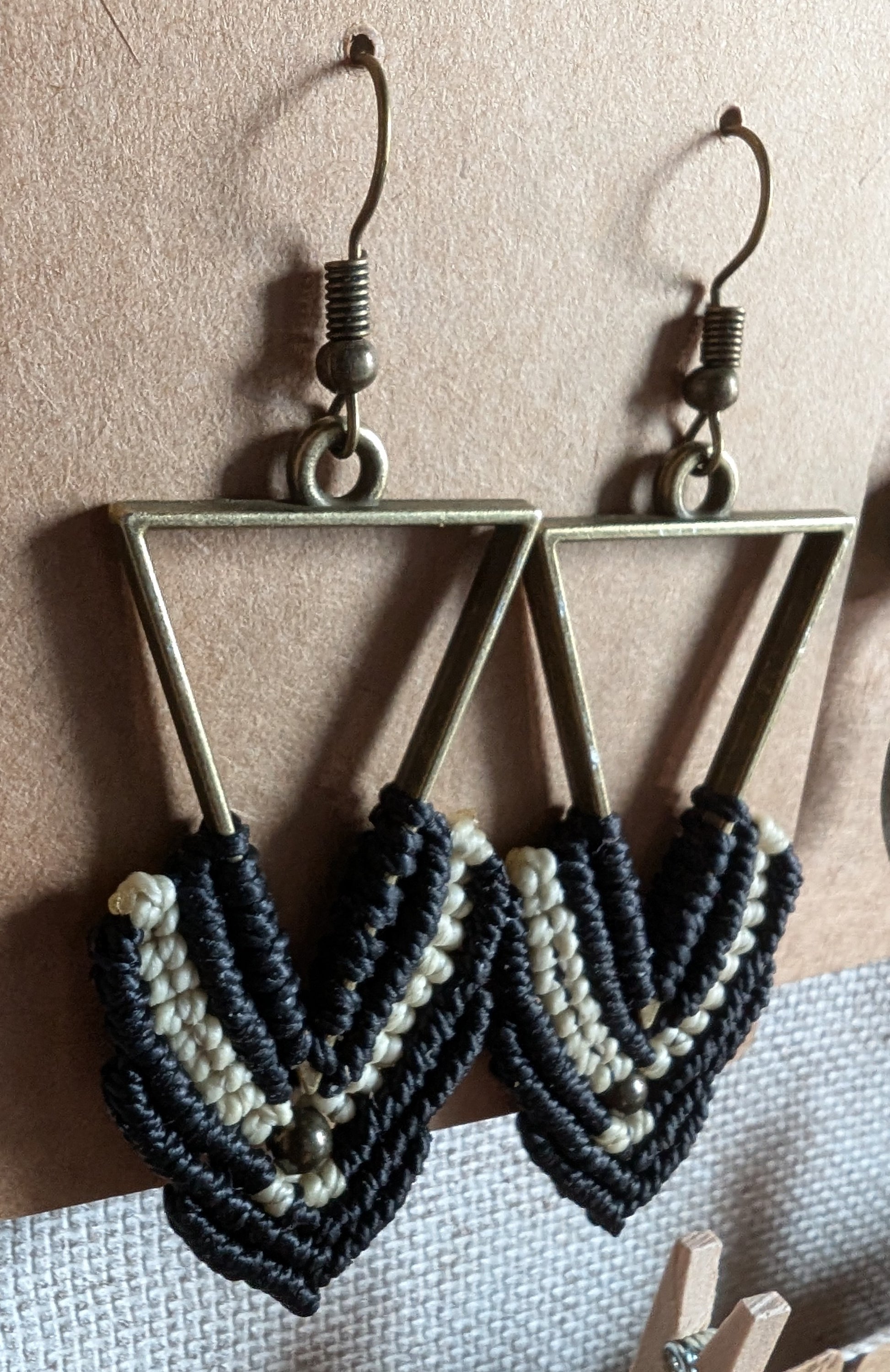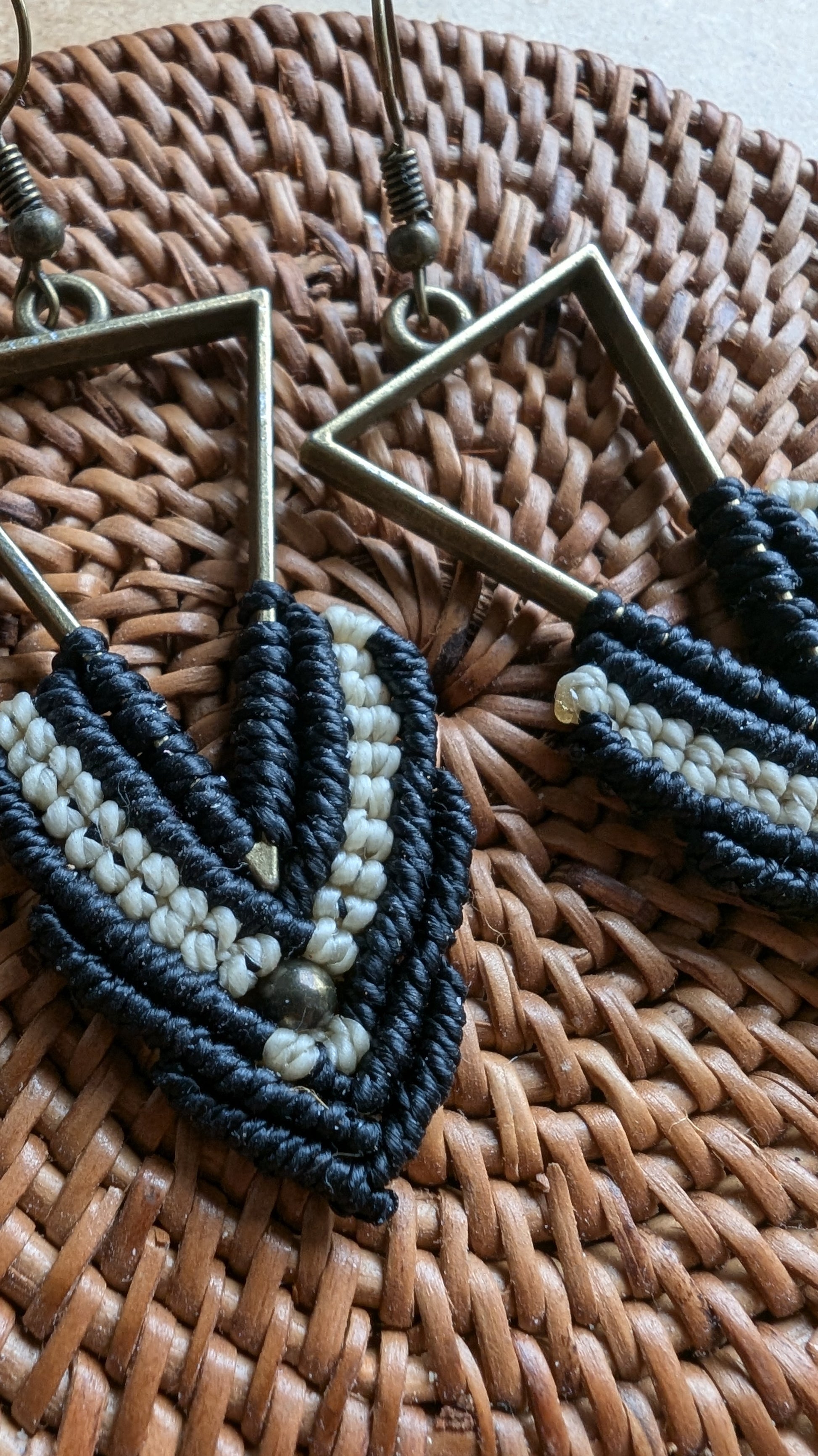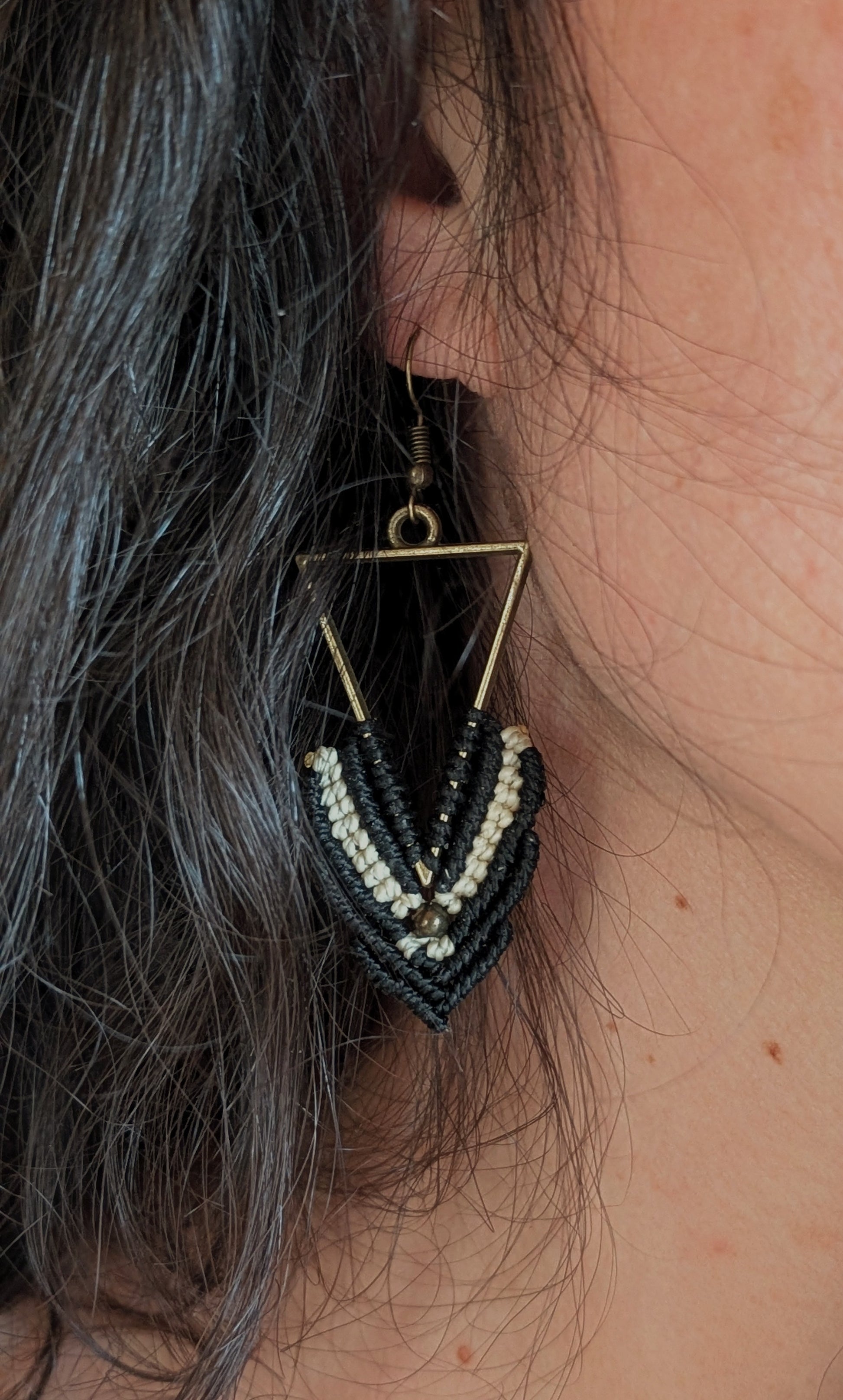 Questi orecchini in stile etnico sono stati intrecciati a mano con la tecnica del micro macramè.