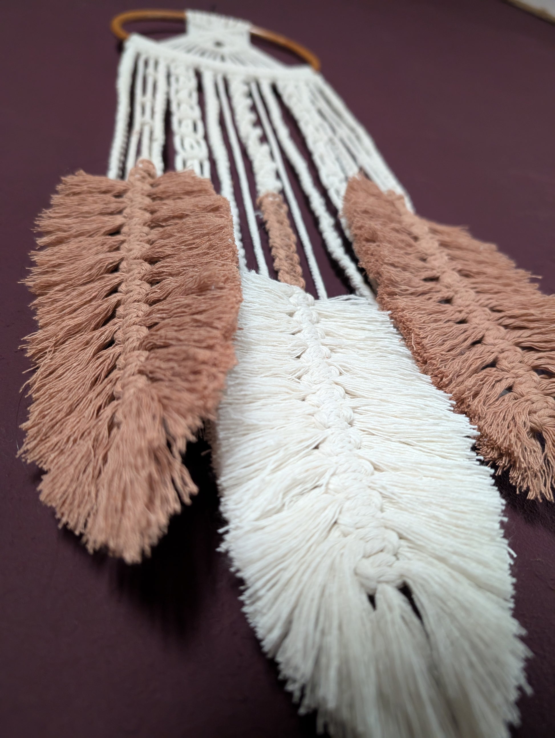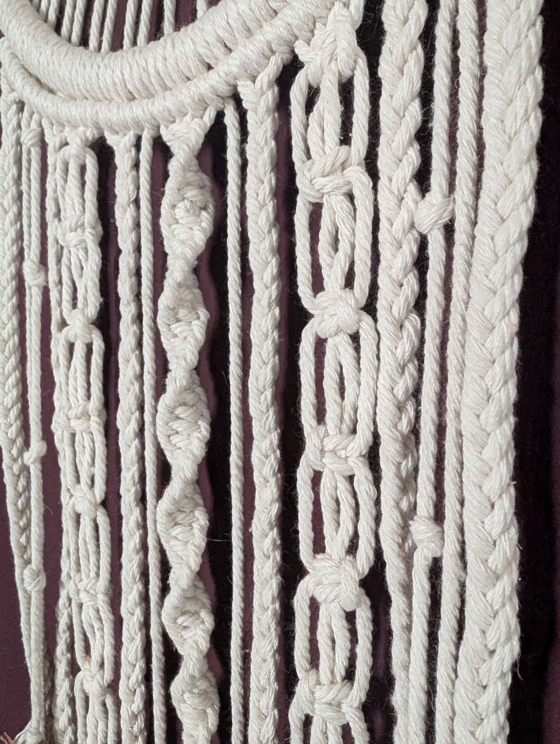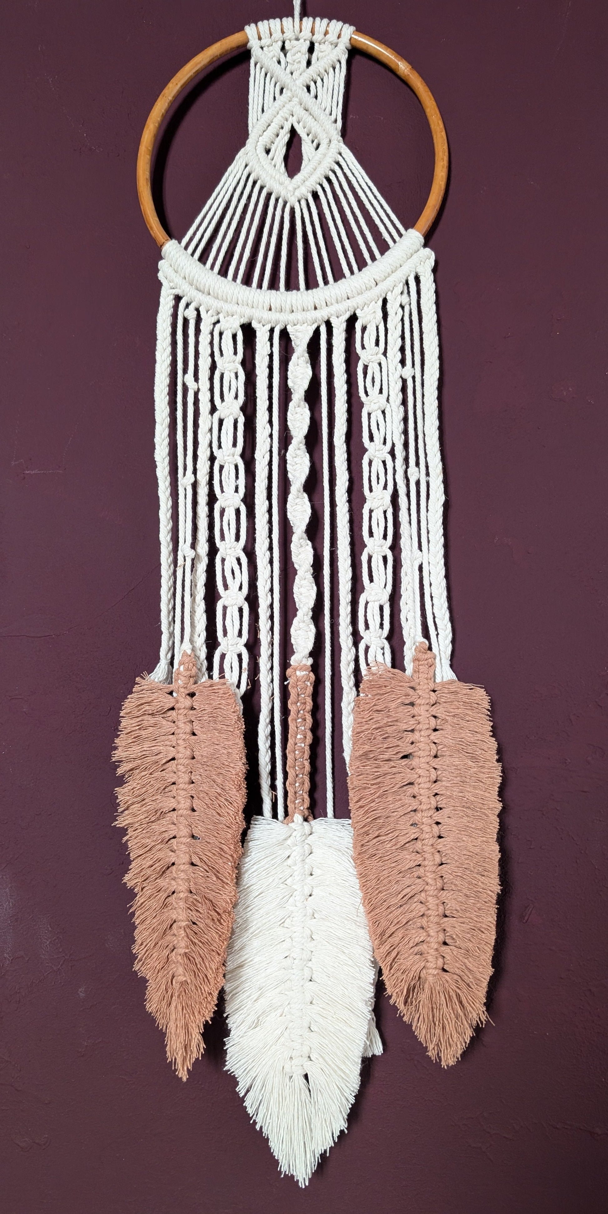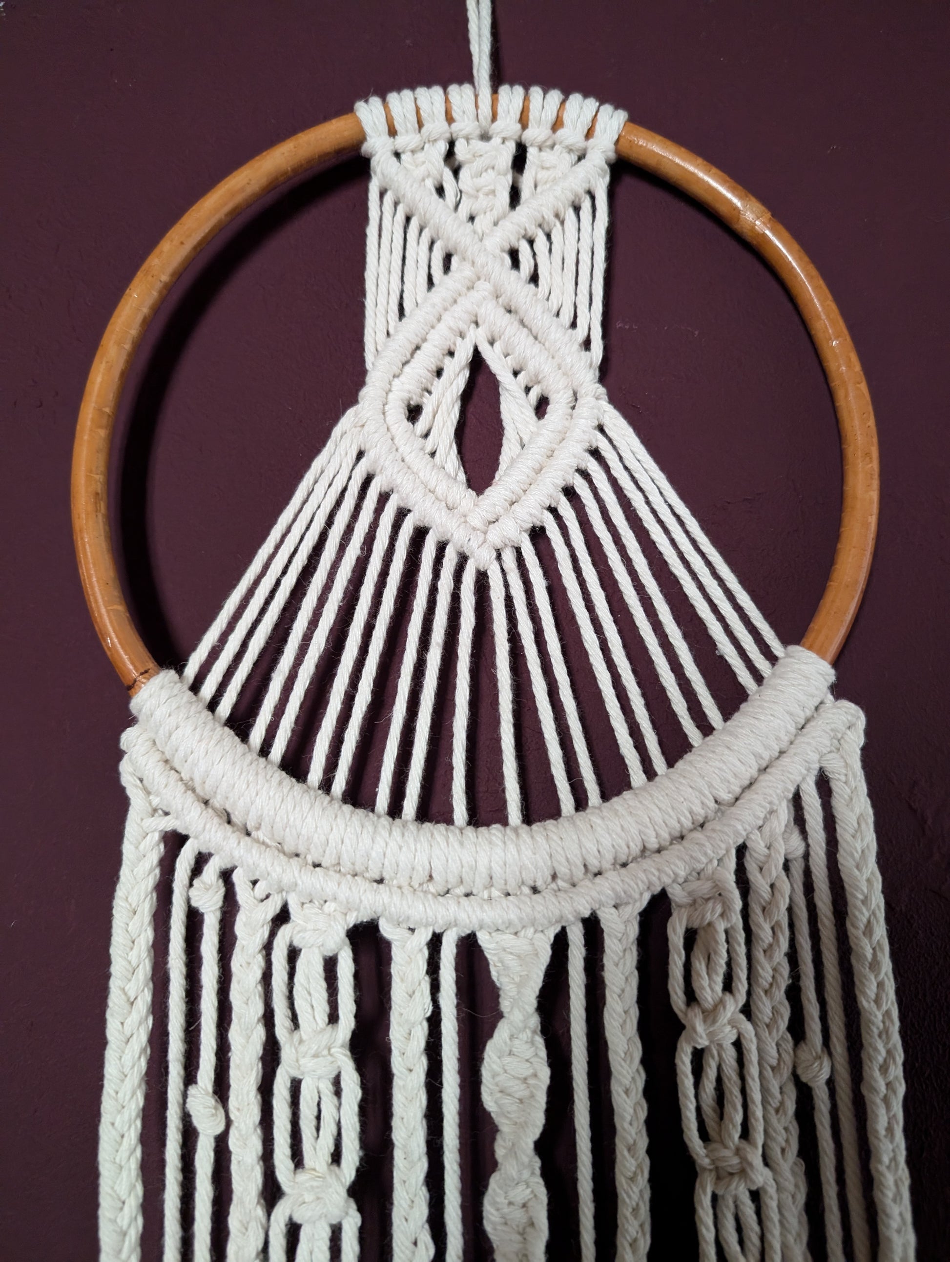 Completamente intrecciato a mano con la tecnica del macramè questo è l'accessorio perfetto da appendere al muro della tua camera proteggendoti dai brutti sogni della notte e dai cattivi presagi del giorno.