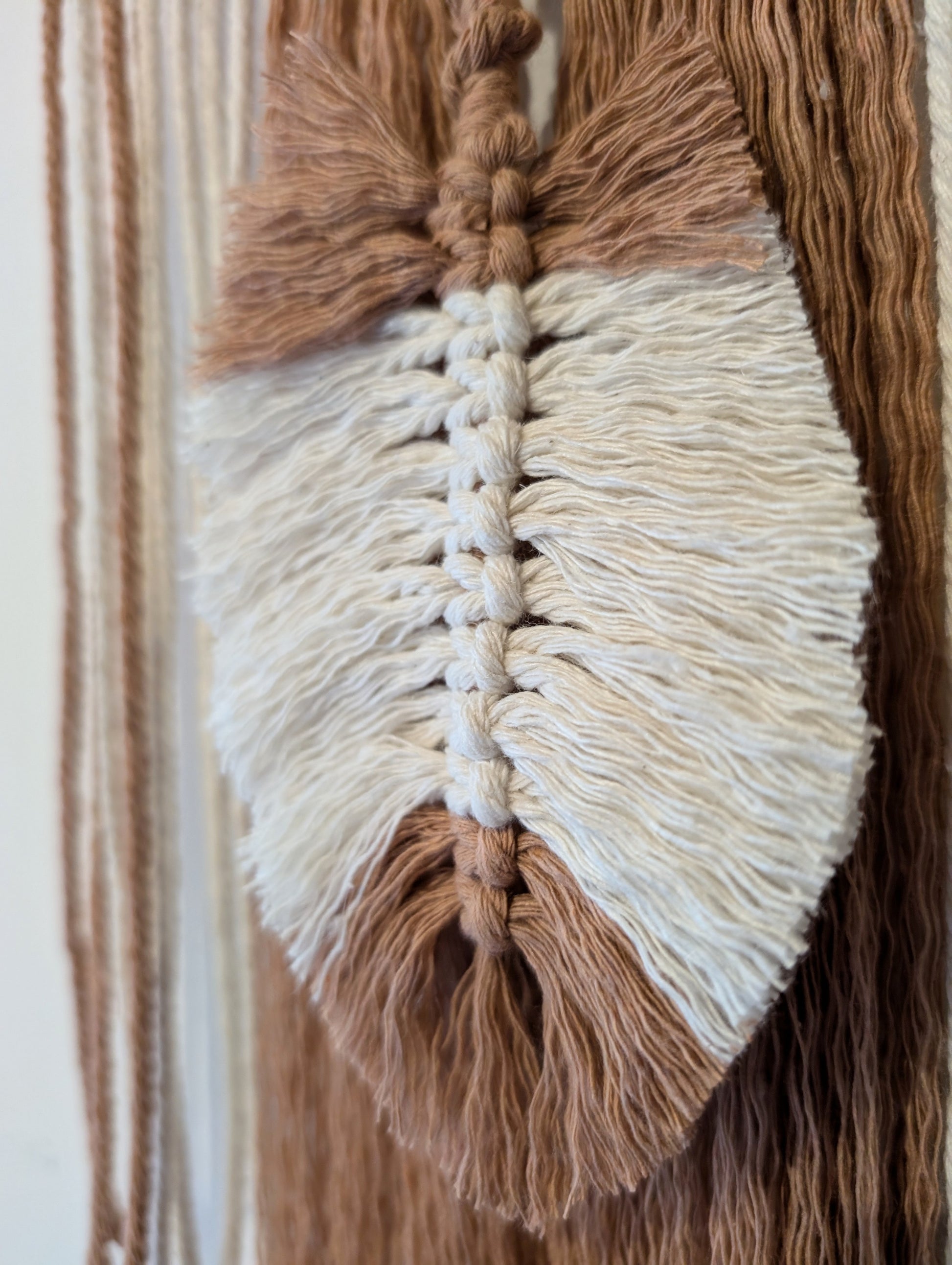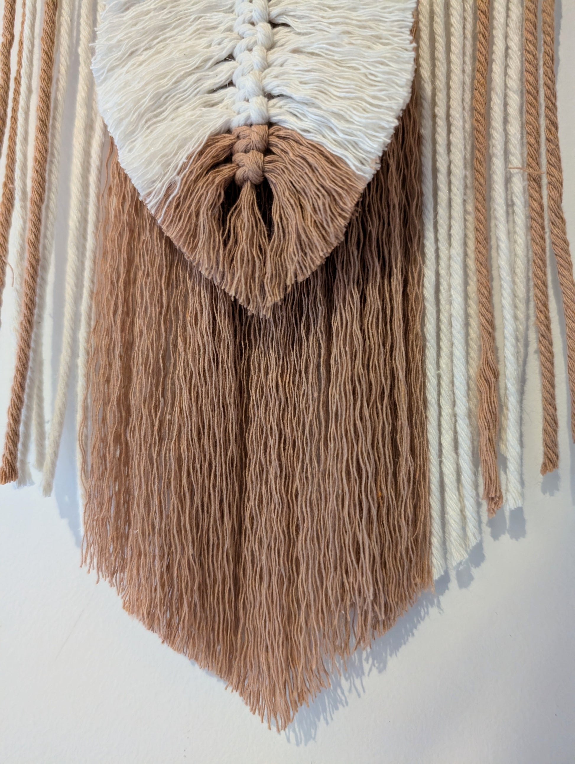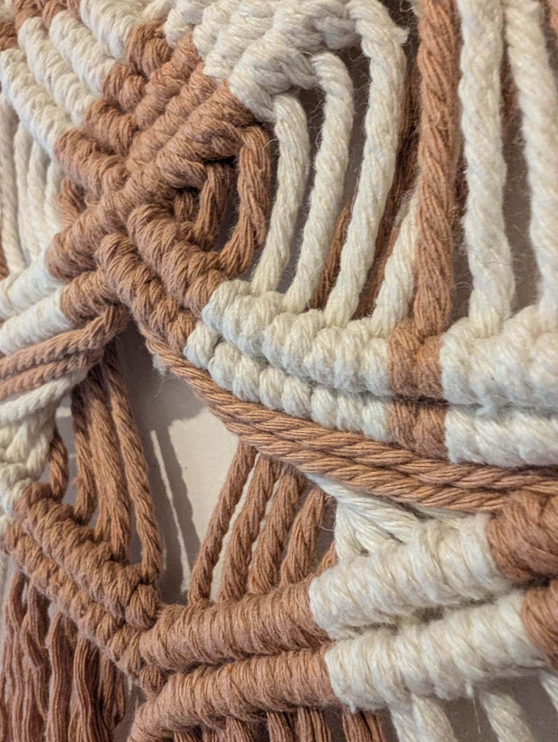 Questo scacciapensieri in "stile azteco" è lavorato interamente a mano con la tecnica del macramè.