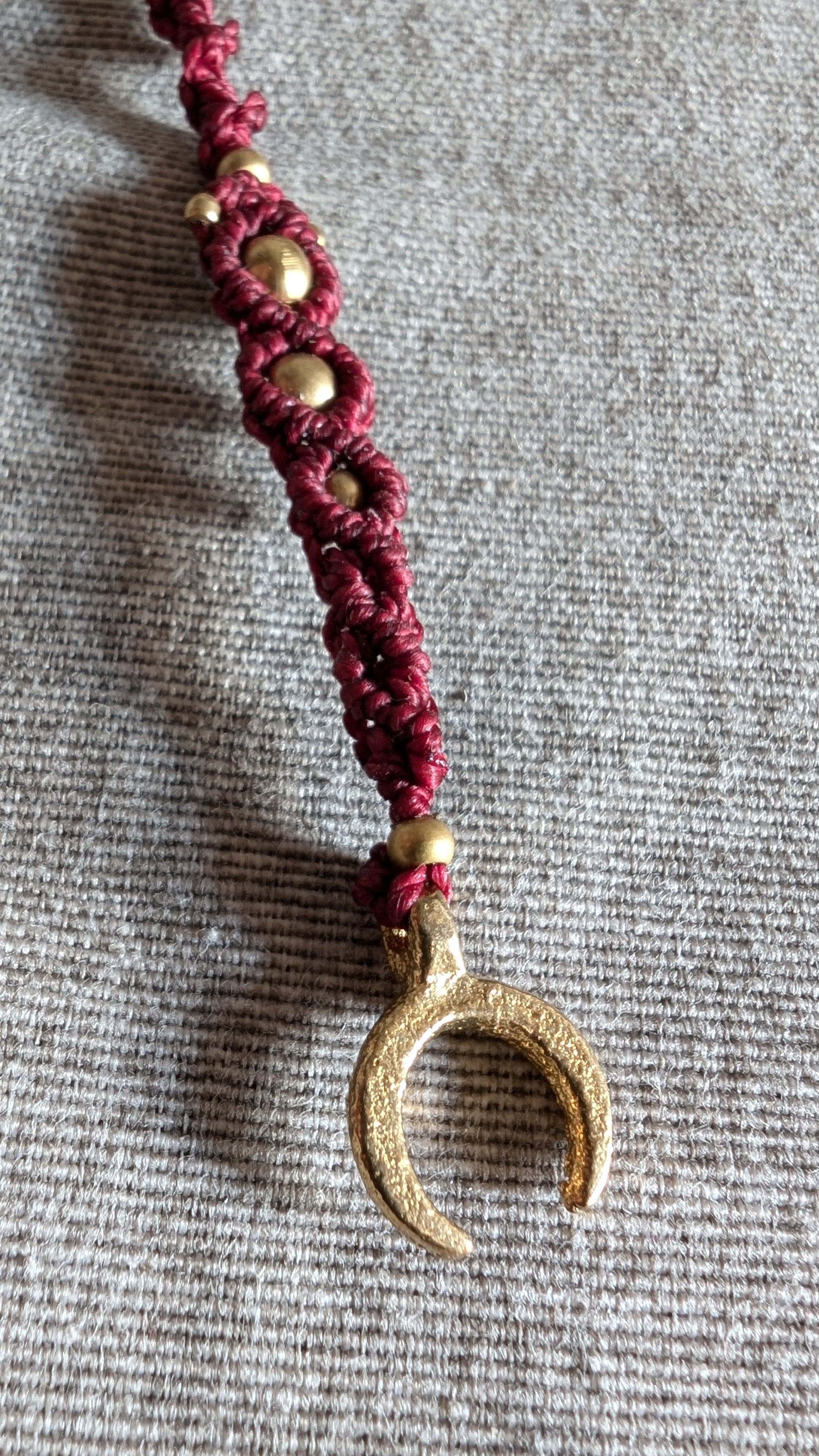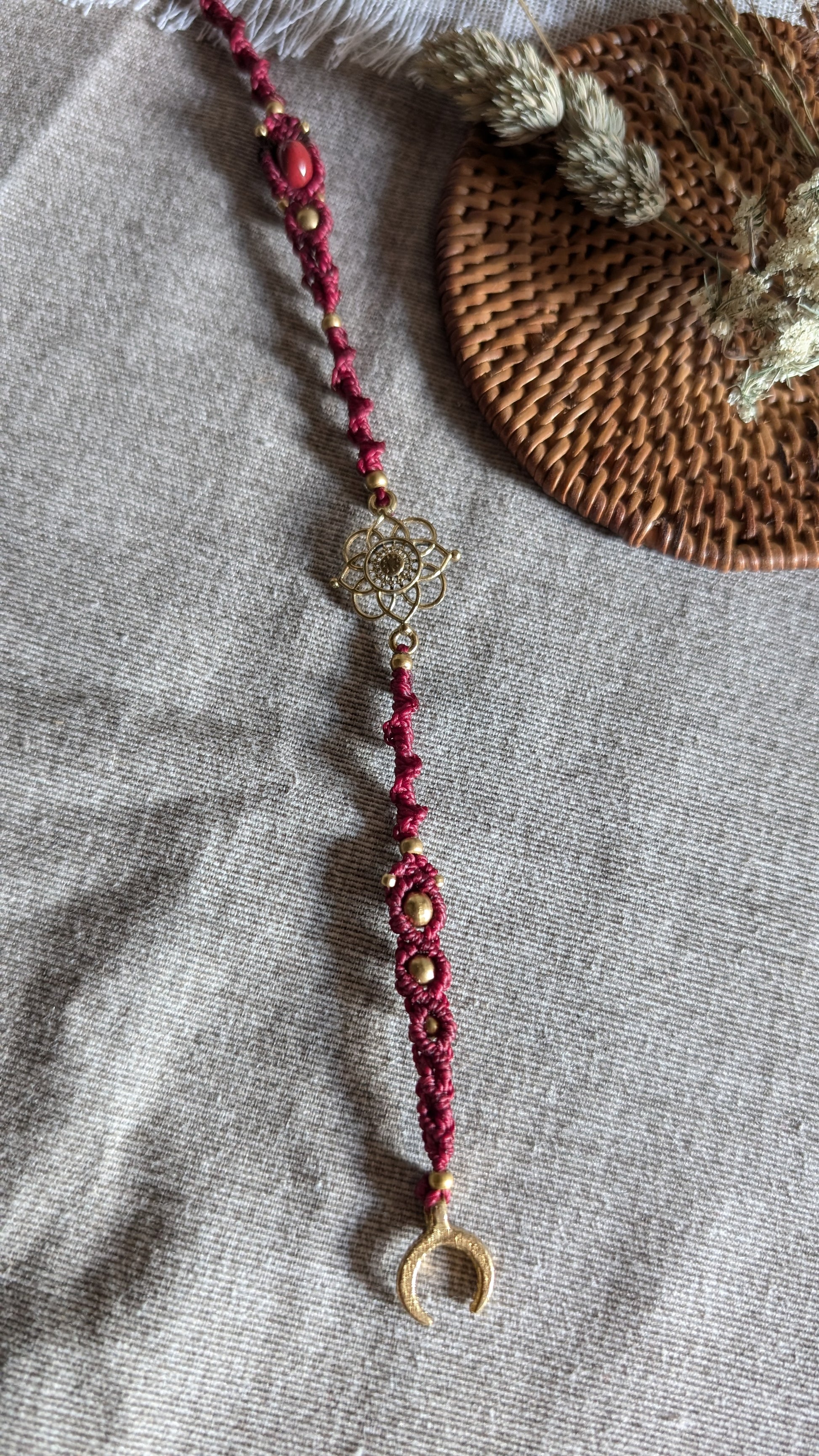 Treccina per capelli con perla in ceramica e charms in ottone.
