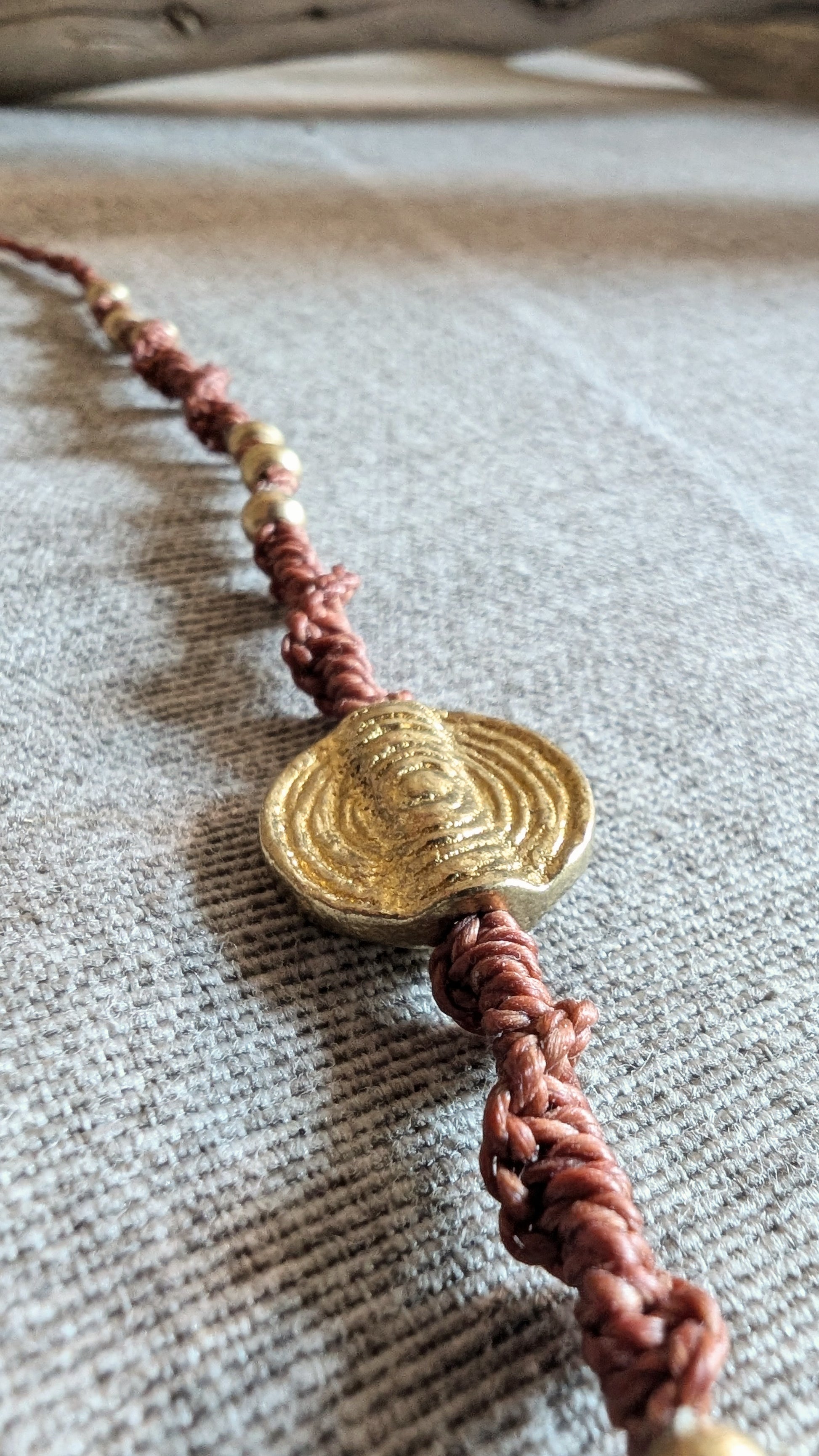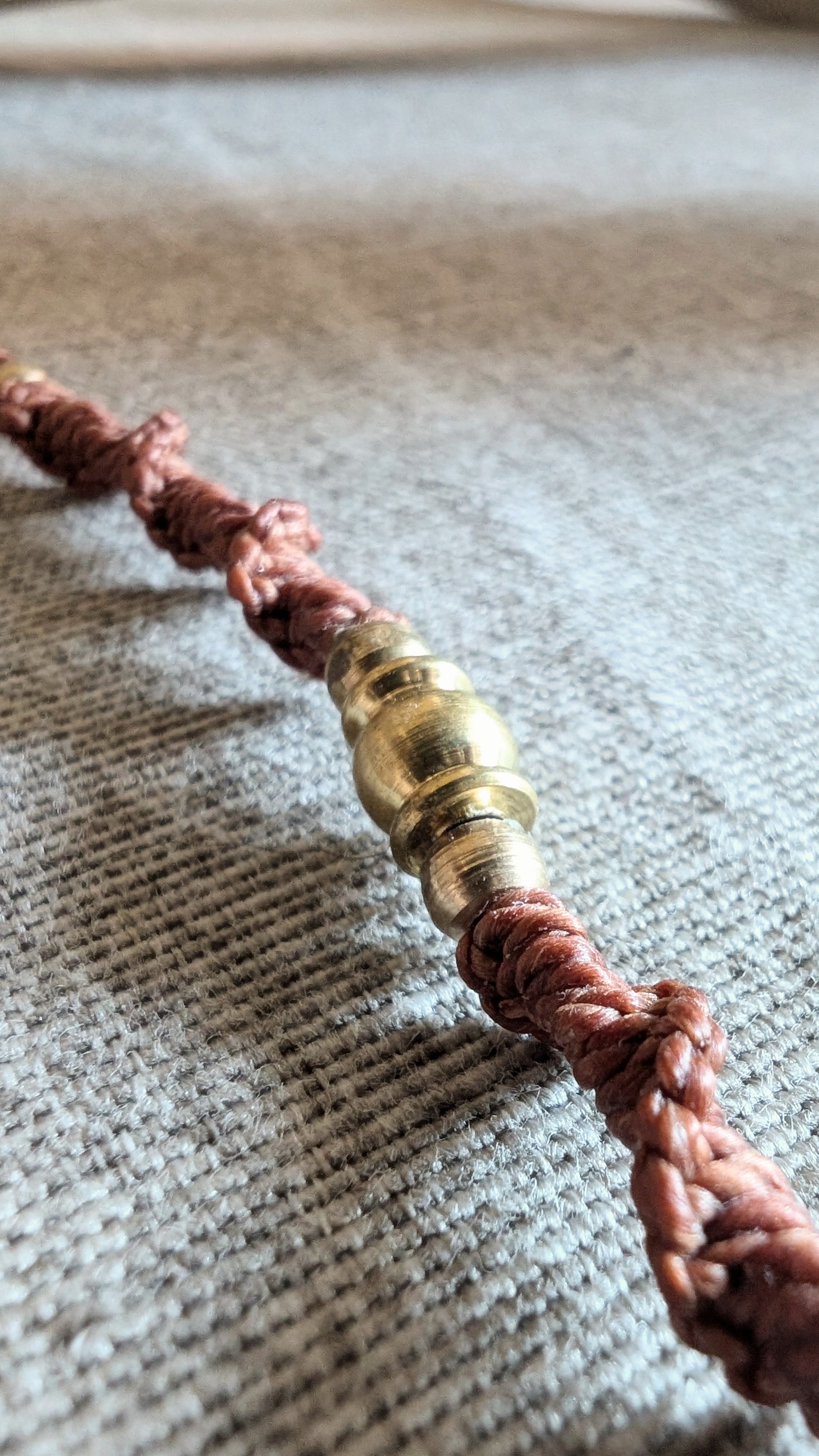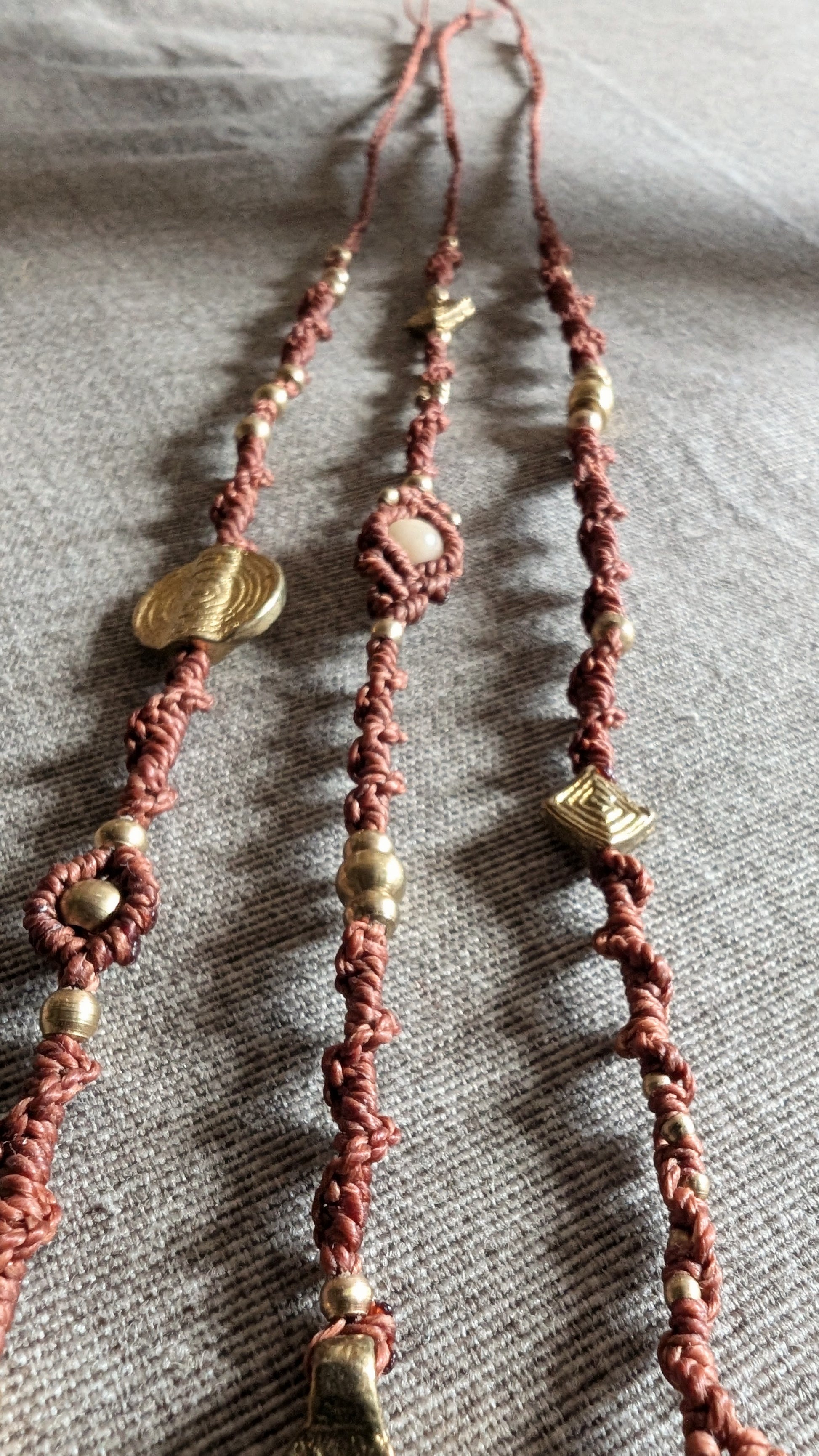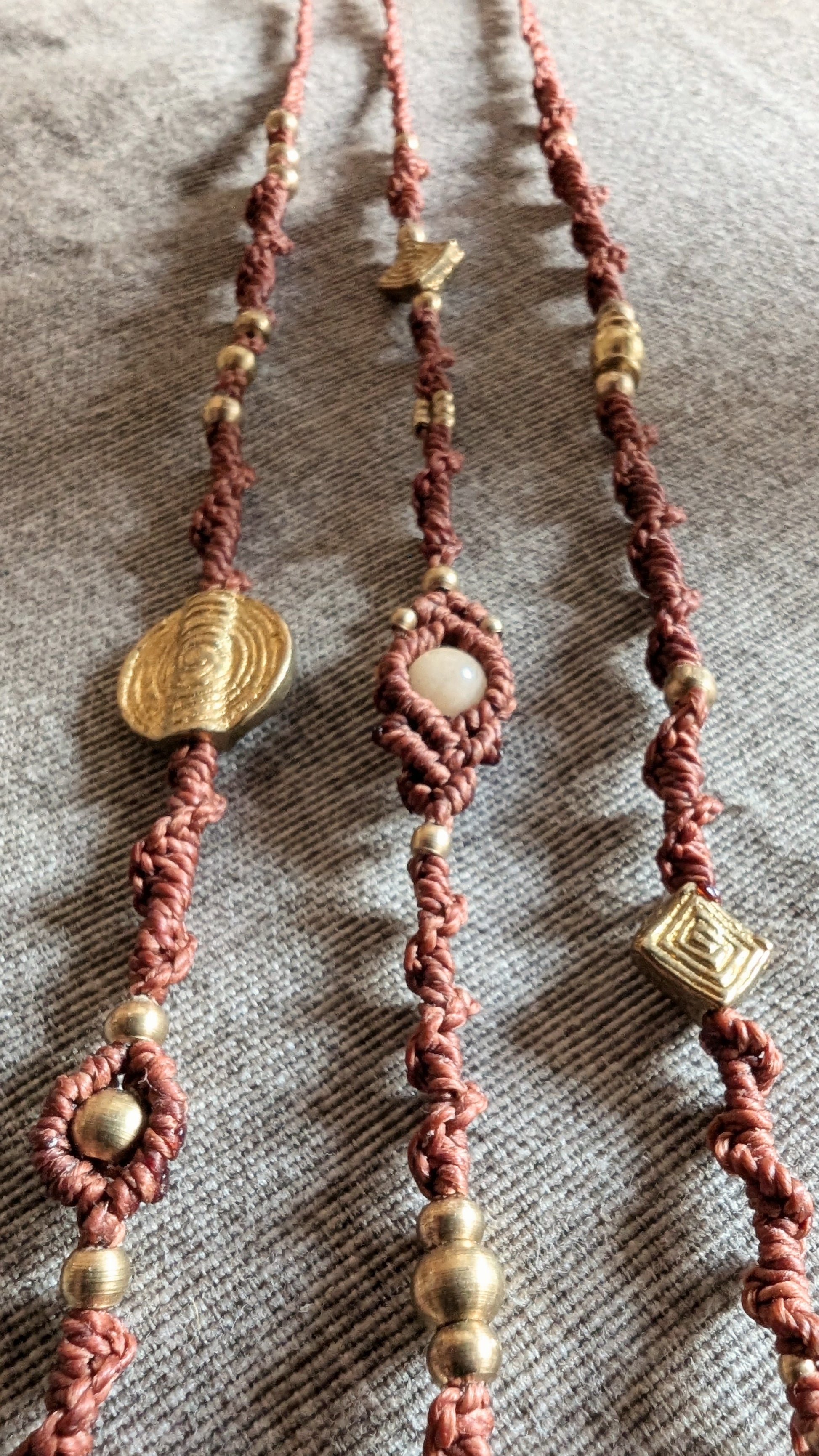 Fatte interamente a mano intrecciando fili di colore ramato.