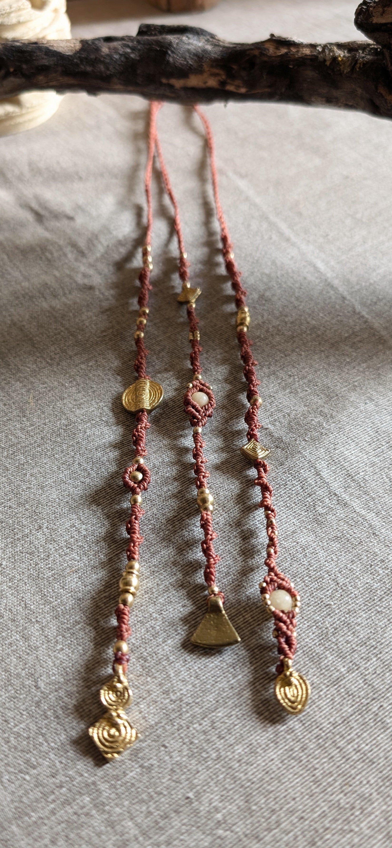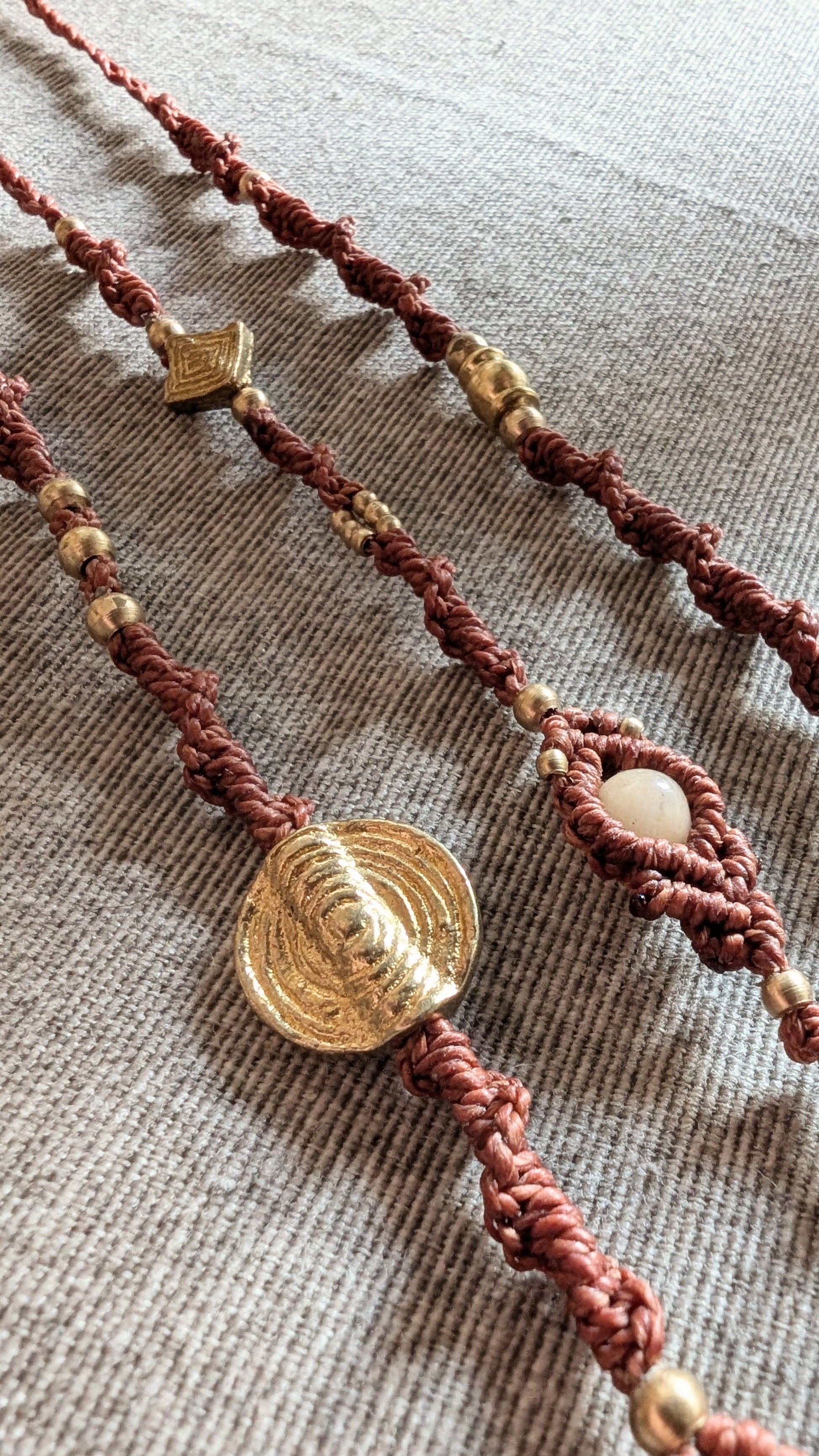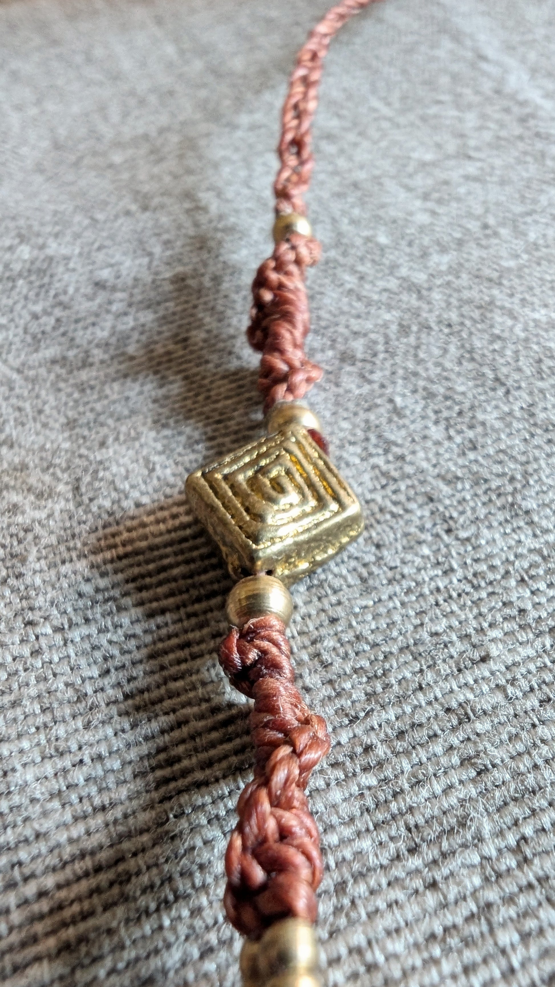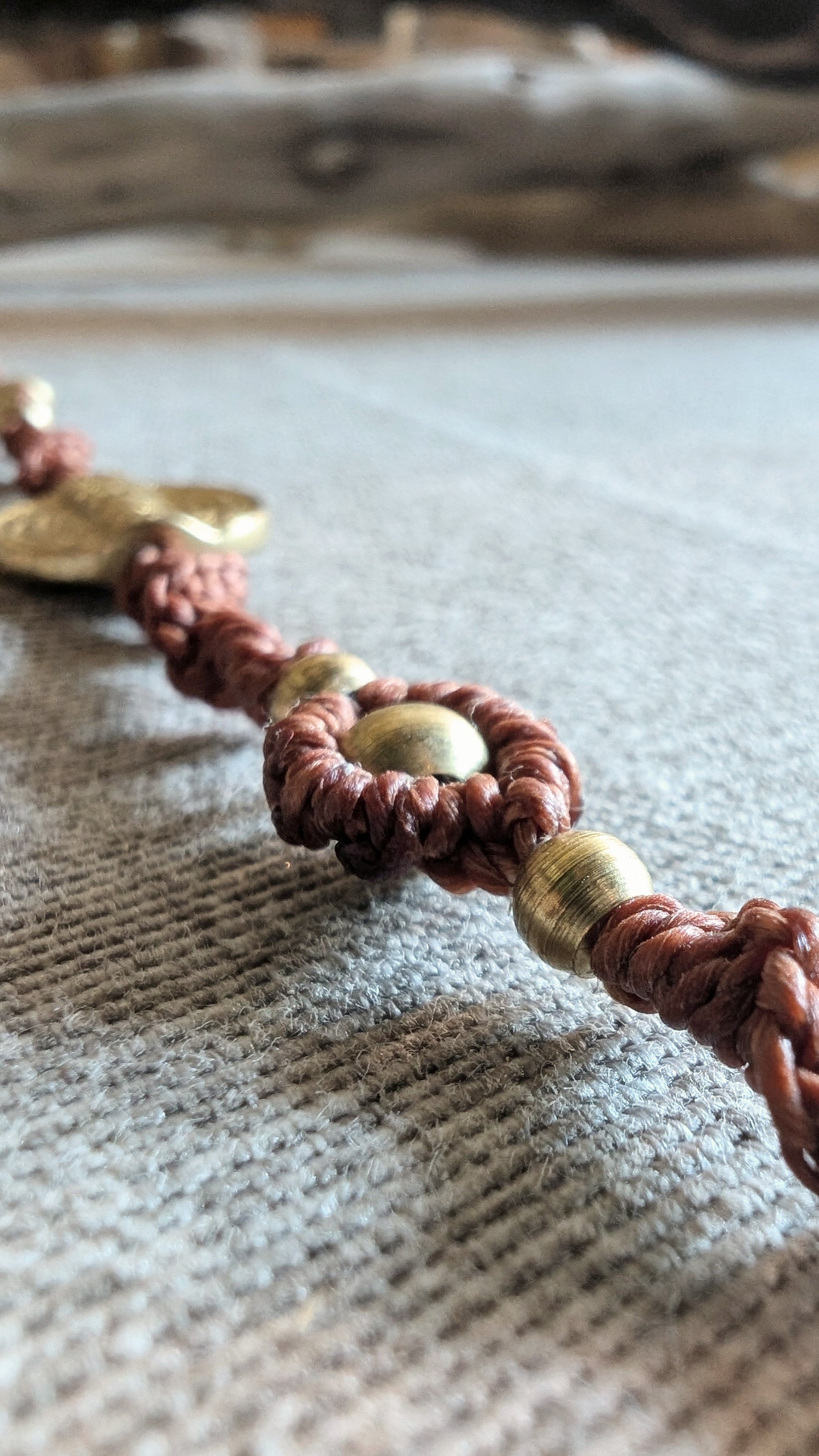 Fatte interamente a mano intrecciando fili di colore ramato.