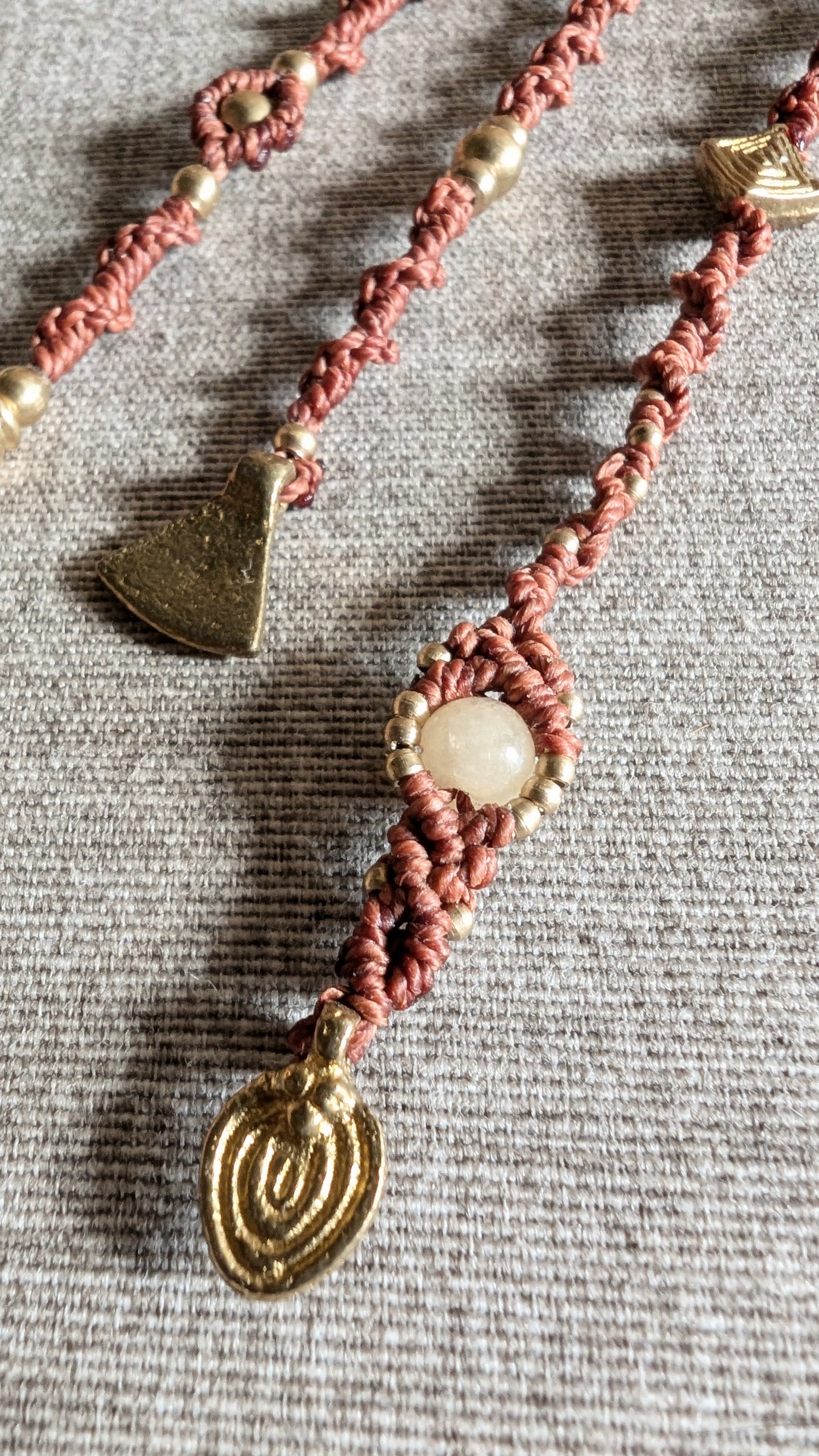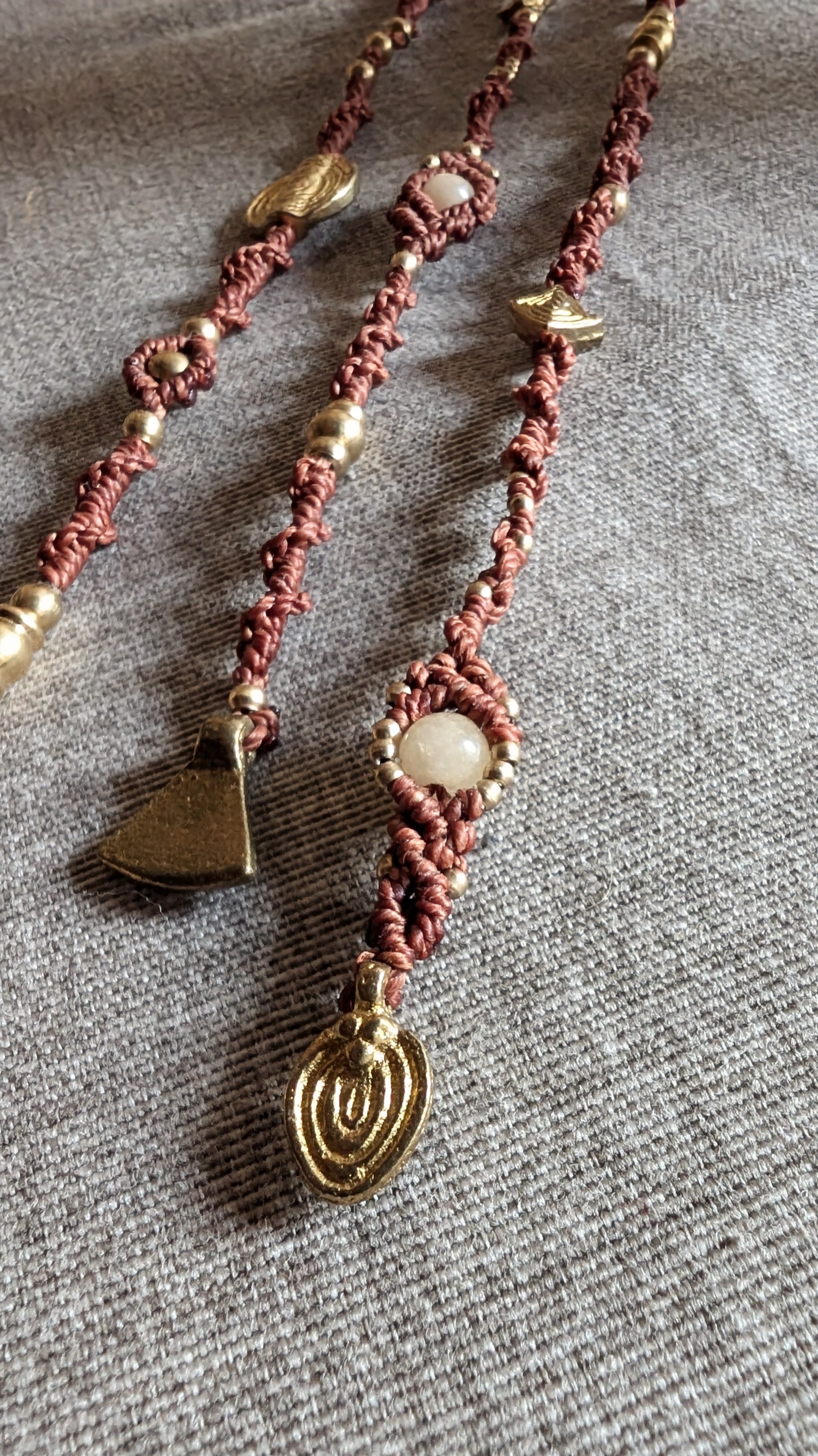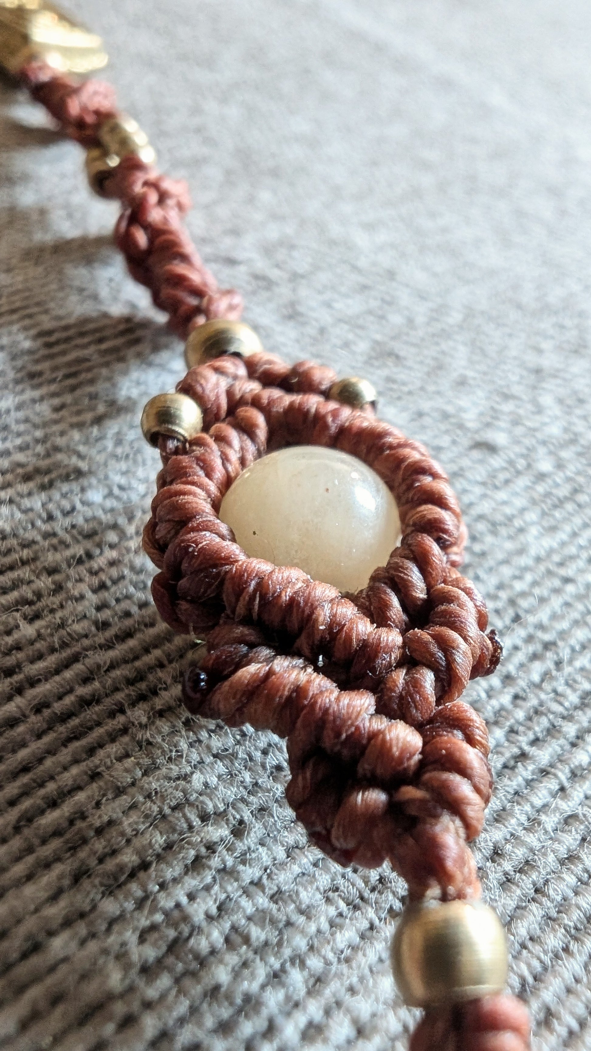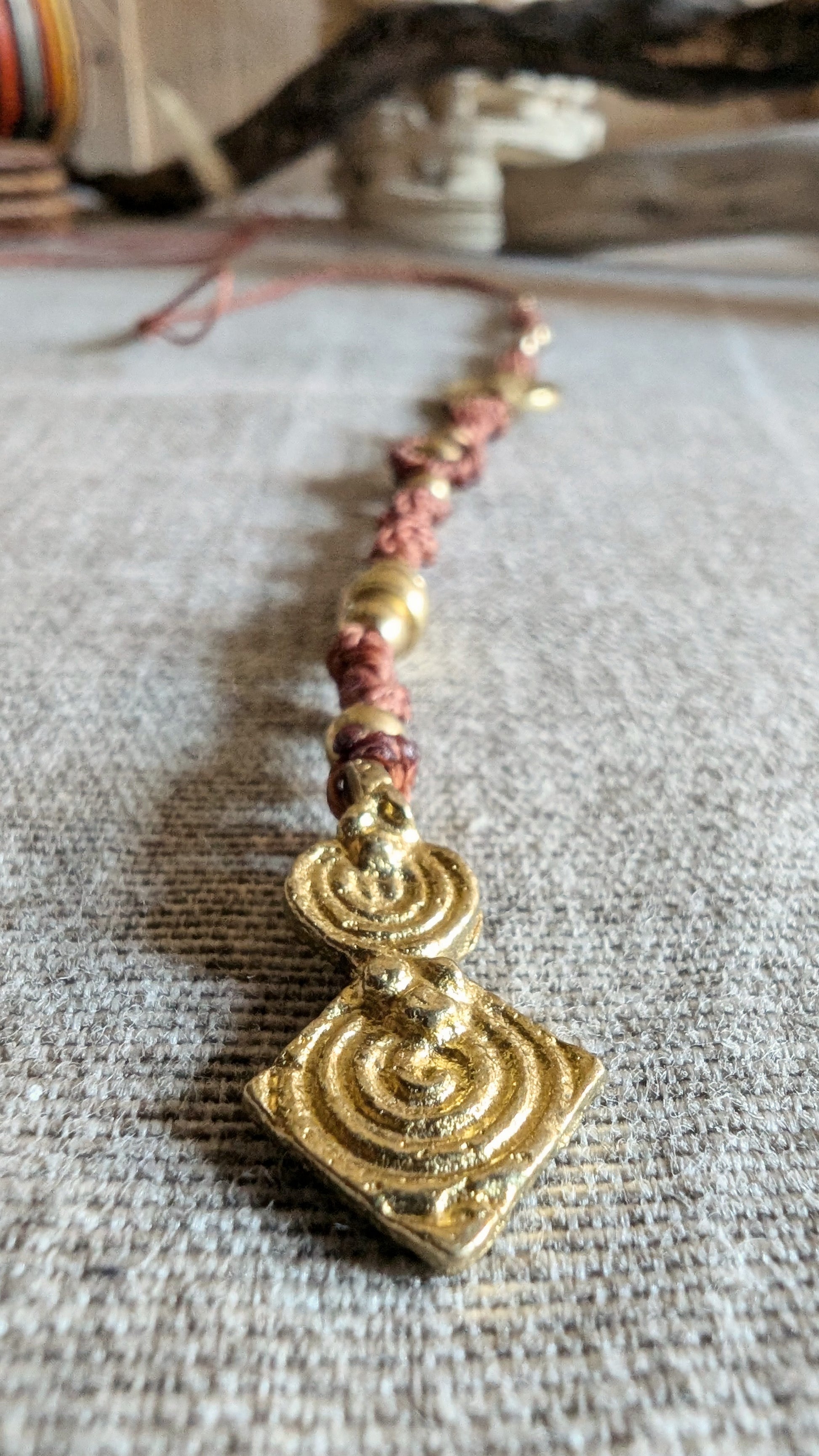 Fatte interamente a mano intrecciando fili di colore ramato.